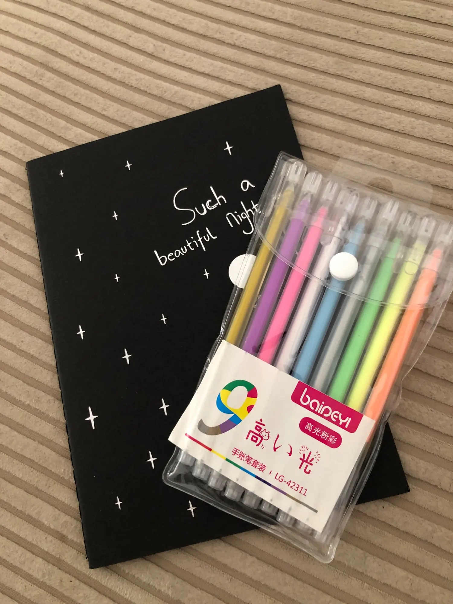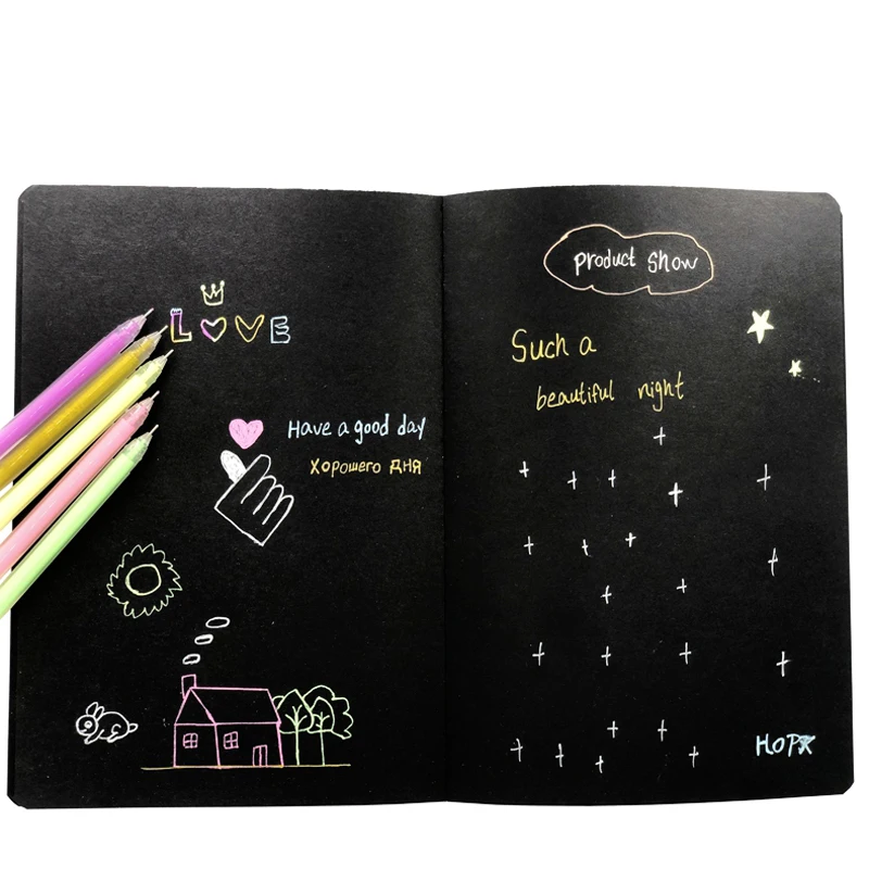 Набор из 9 шт. ручек и 1 шт. блокнота, 2020 альбом для набросков, дневник для граффити, с мягкой обложкой, черная бумага, блокнот для набросков, офисные и школьные принадлежности