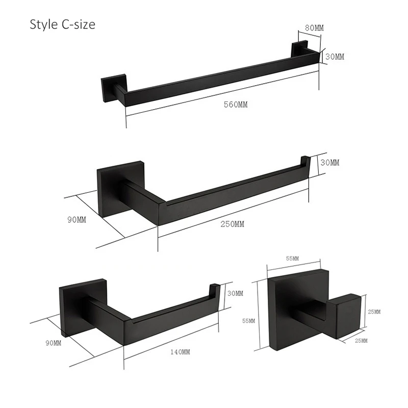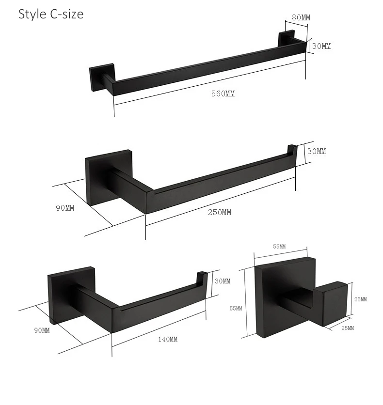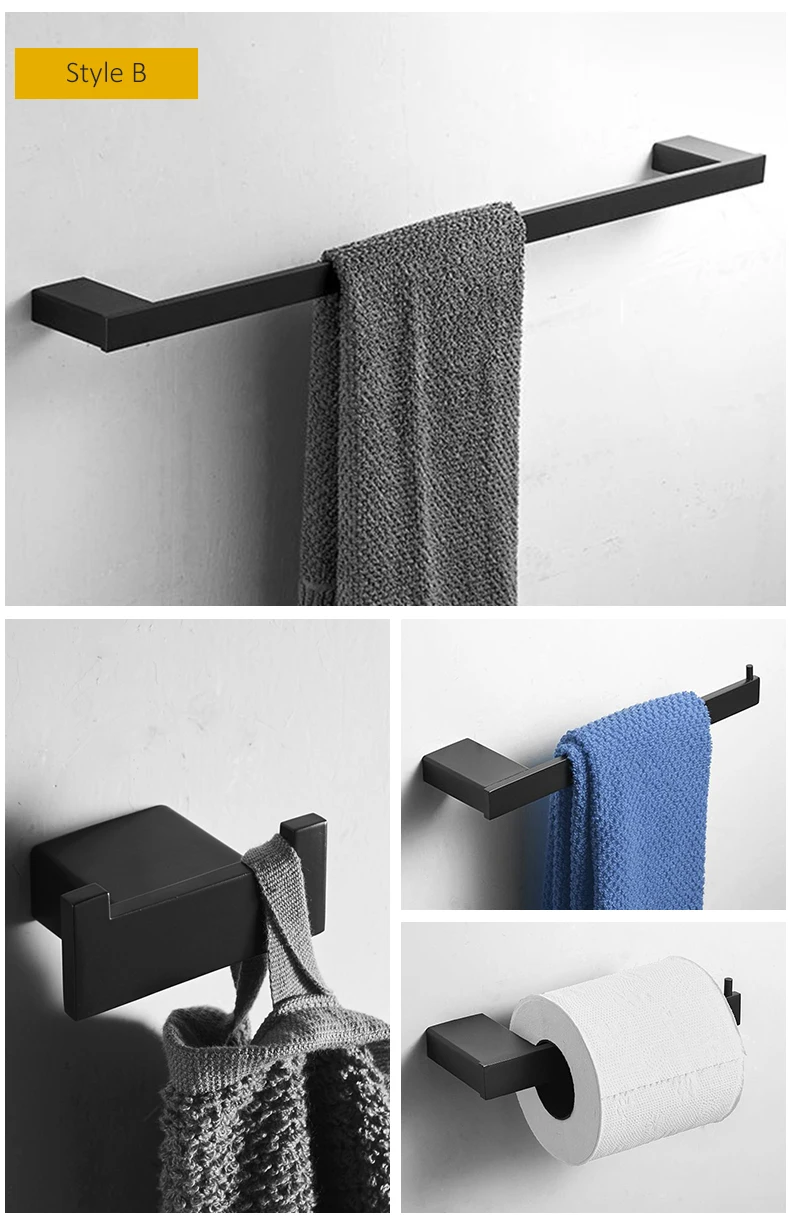 Набор принадлежностей для ванной комнаты из матового черного цвета, крючок для полотенец, держатель для туалетной бумаги, аксессуары для ванной комнаты EL480B