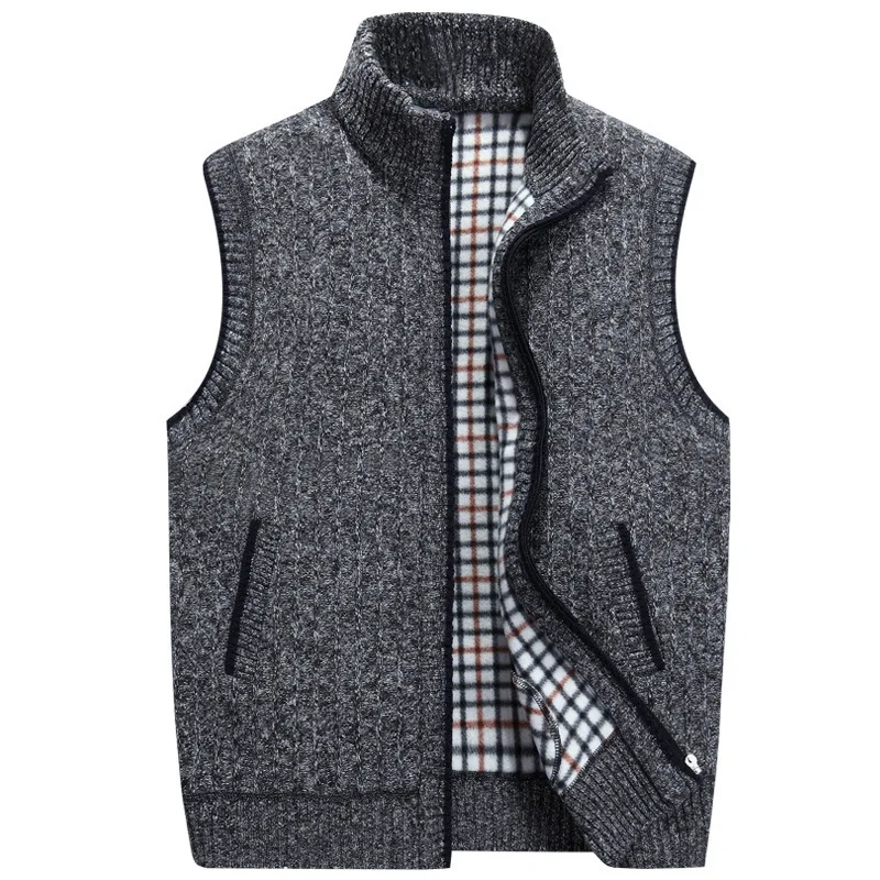 2020 осенне-зимние мужские шерстяные свитера, жилетка, пальто, Толстая Теплая Повседневная однотонная флисовая куртка без рукавов, жилетка, вязаный жилет на молнии
