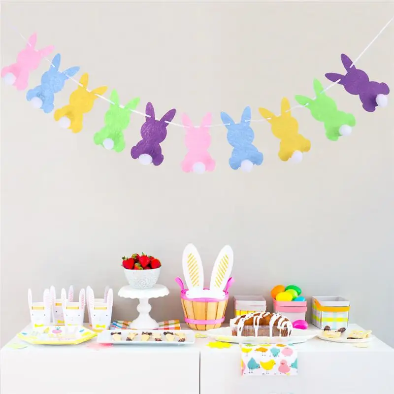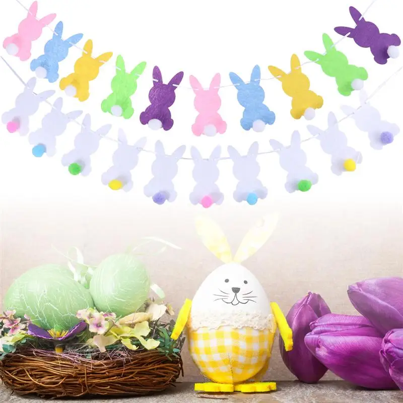 Баннер в форме кролика с помпоном, 2 набора, баннер для пасхи, фетровый флаг, Декоративная гирлянда для украшения Пасхальной вечеринки