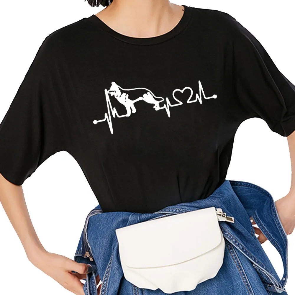 Футболка в стиле Харадзюку с изображением немецкой овчарки, женская одежда, повседневные топы с коротким рукавом, футболки