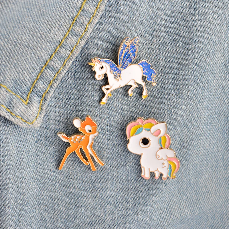 Брошь женская эмалированная в форме единорога, лошади, оленя