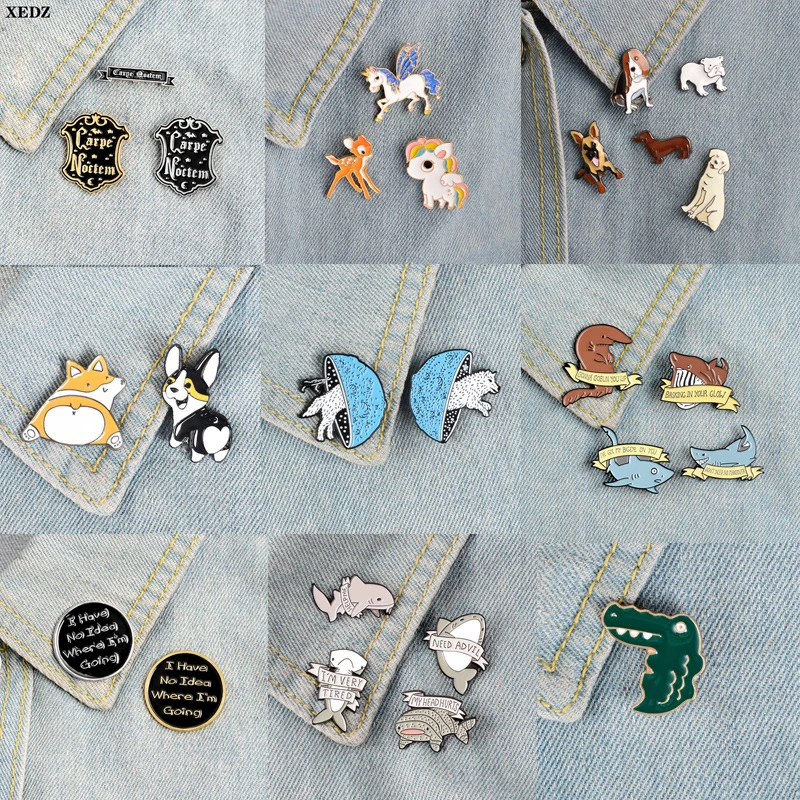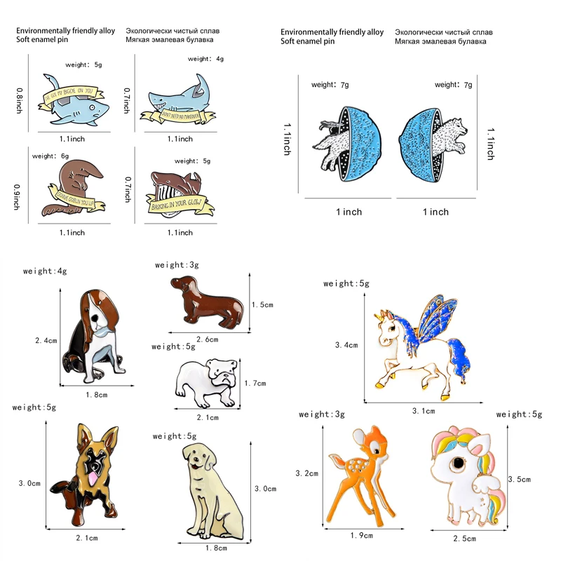 Брошь для рюкзака, с эмалью, с овечьими крыльями, лошадью, озорной собакой, акулой, тигром, лисой