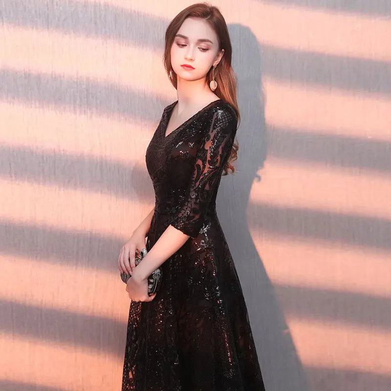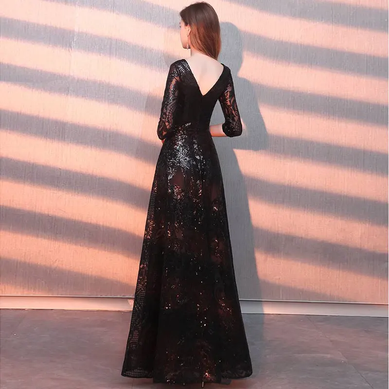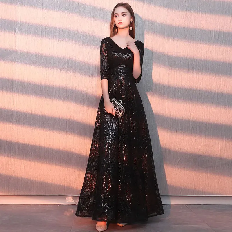 Длинное вечернее платье с блестками, с коротким рукавом, с узором