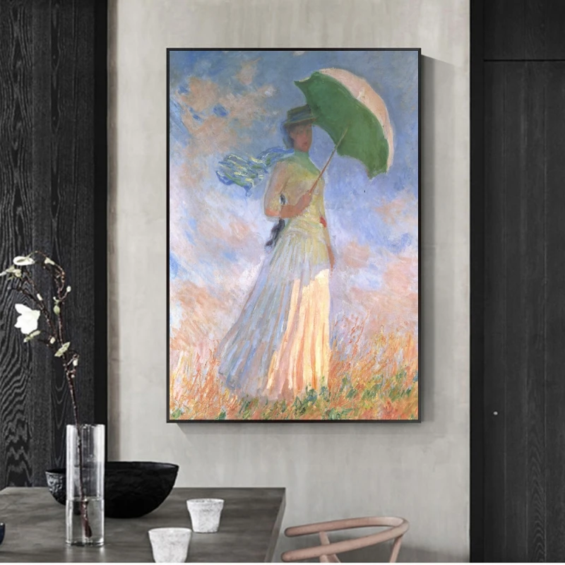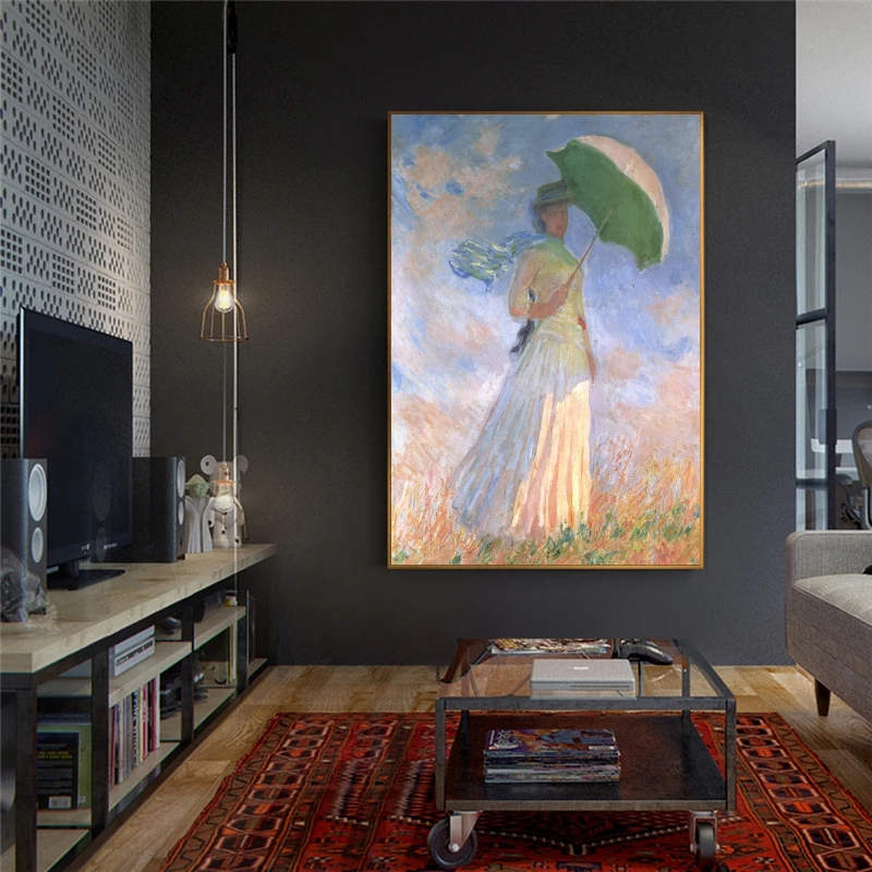 Картины маслом в стиле импрессионистов, Клод Моне, женщина с зонтиком, Репродукция стен, известные принты на холсте для декора гостиной