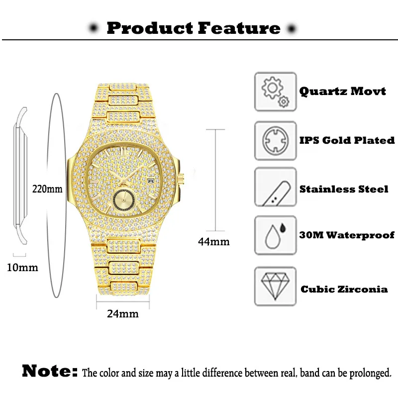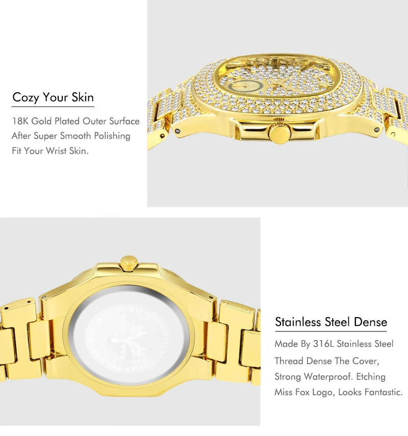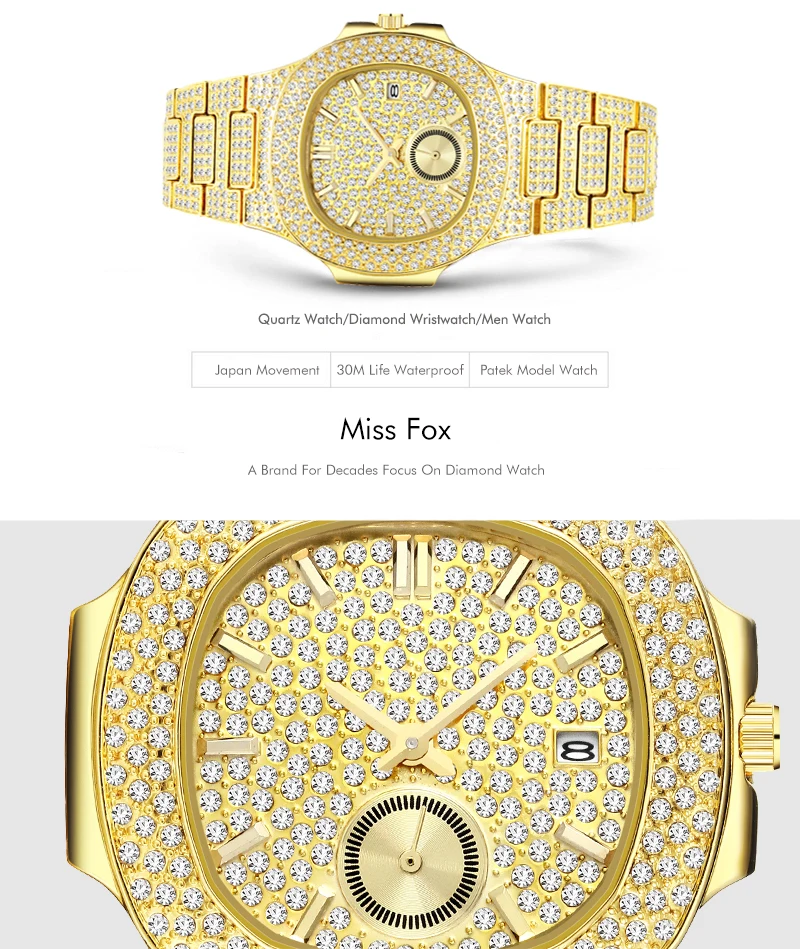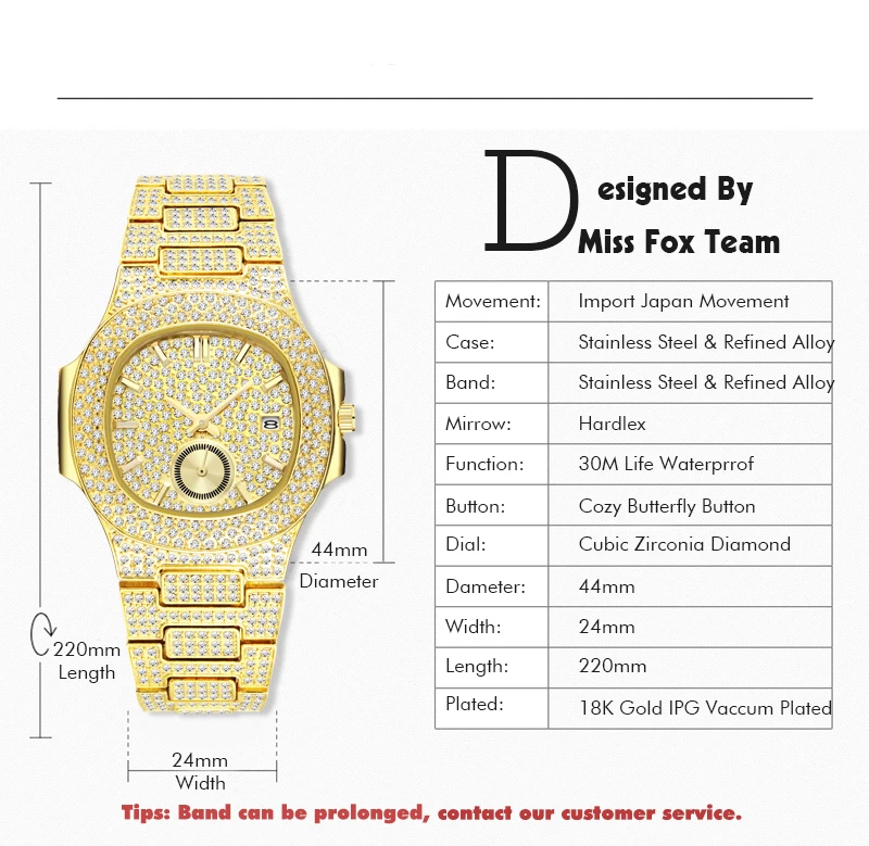 Мужские водонепроницаемые аналоговые кварцевые часы с календарем и датой MISSFOX 2019 Стиль: роскошный -Большой алмаз -100% Новинка и высокое качество. -Кварцевый механизм для точного учета времени. -Ежедневная водонепроницаемость 30 м (не для душа и плавания), ударопрочность -Вакуумное напыление золота 18 карат, золотой цвет не выцветает. -Vatenlines, рождественский подарок, день рождения вечерние, день рождения, одежда для свиданий Особенности (прибл.): Диаметр чехла: около 4,4 см Толщина корпуса: около 1,0 см Материал корпуса: нержавеющая сталь Ширина ремешка: 2,4 см Длина ремешка: прибл. 22,00 см Материал ремешка: нержавеющая сталь Регулируемый ремешок: Да, можно продлить, свяжитесь с нашей Золотой службой поддержки клиентов Посылка 1 х часы