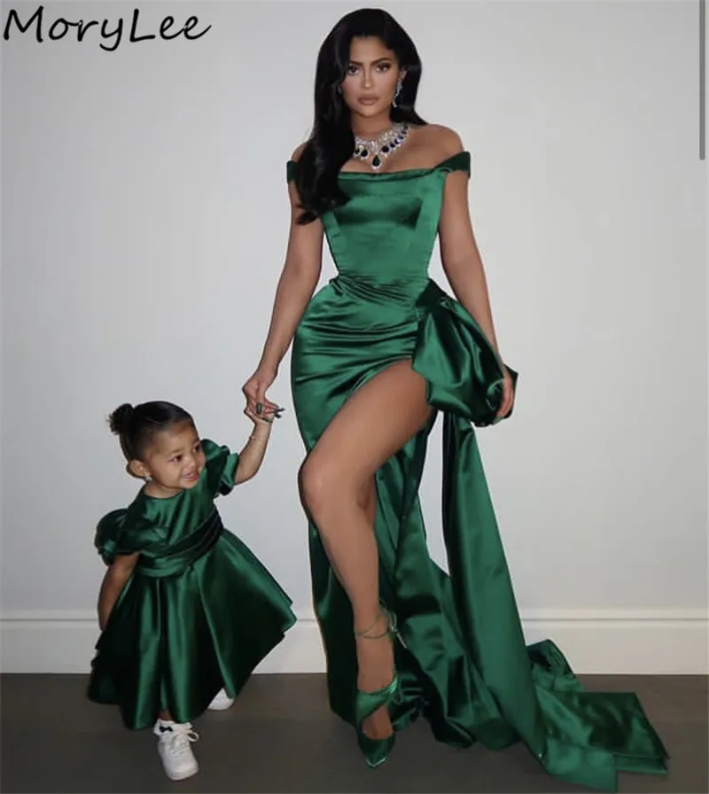 Женское атласное вечернее платье-русалка, зеленое платье без рукавов со шлейфом, молнией и разрезом сбоку