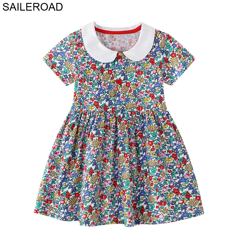 SAILEROAD Baby Girl Необычные платья на лето Новые детские топы для девочек с цветочным принтом Красивое платье с принцессой для детей и воротником