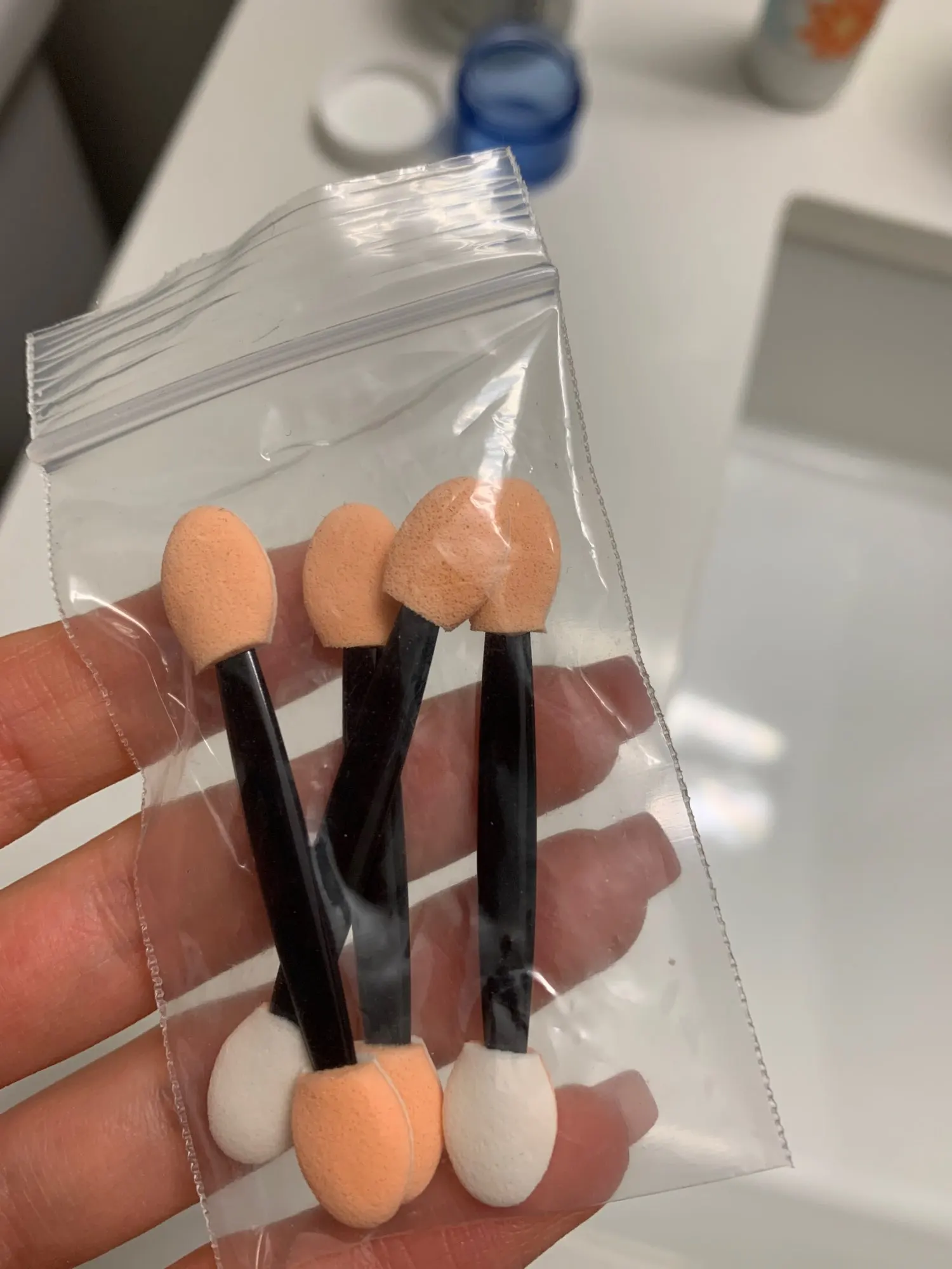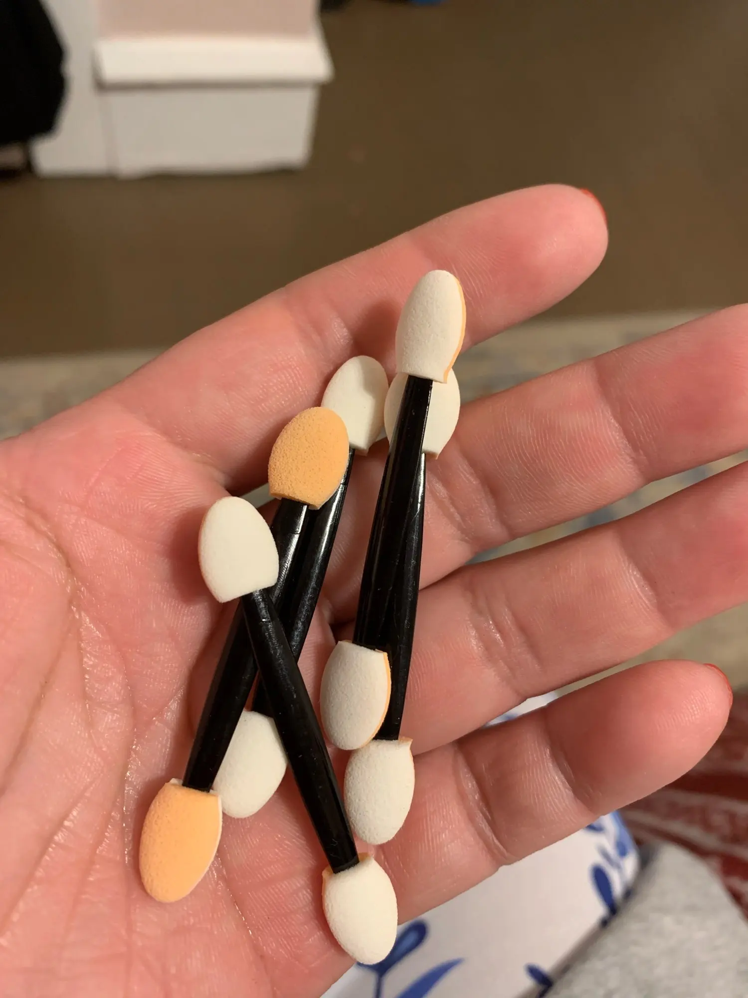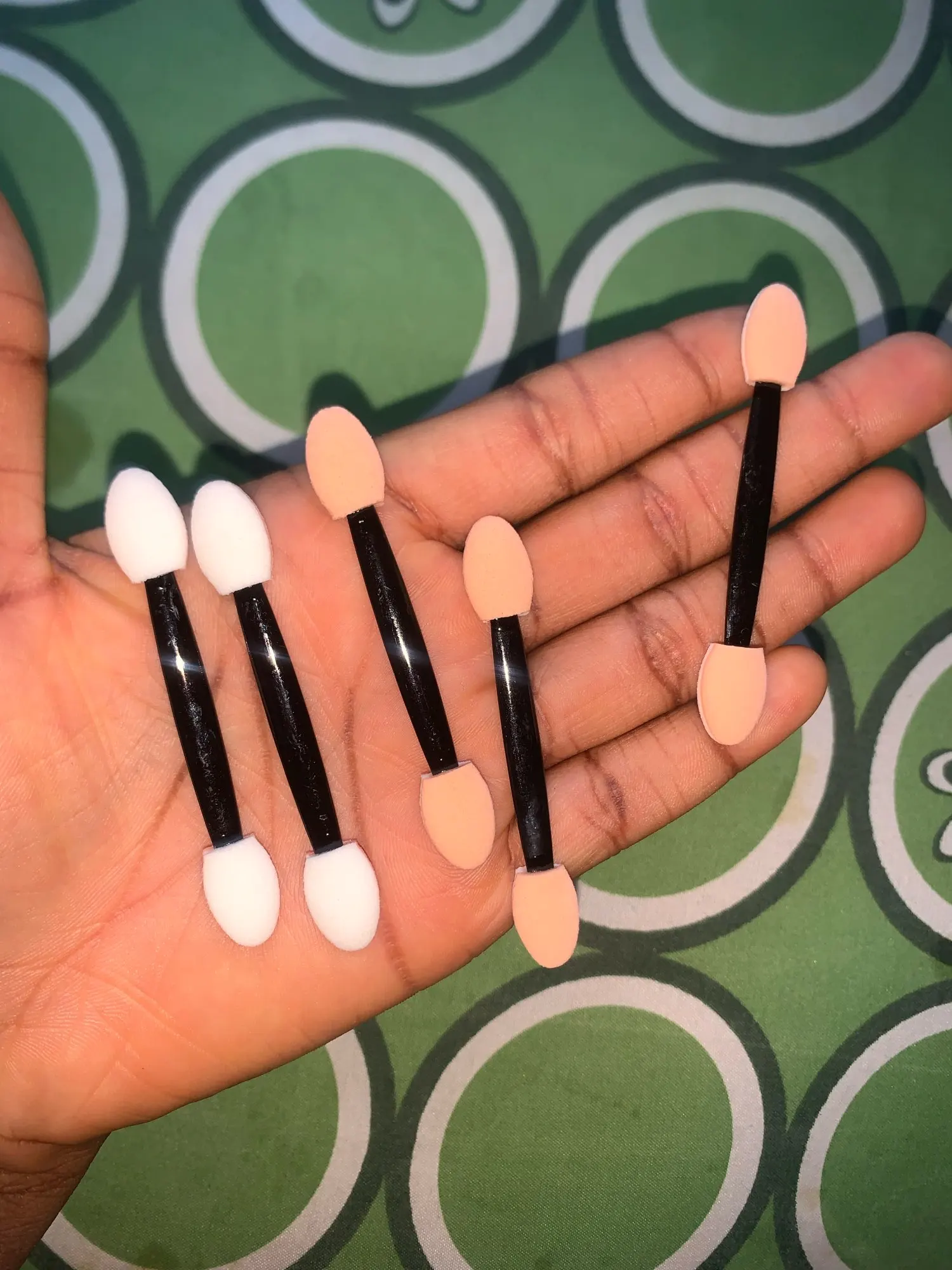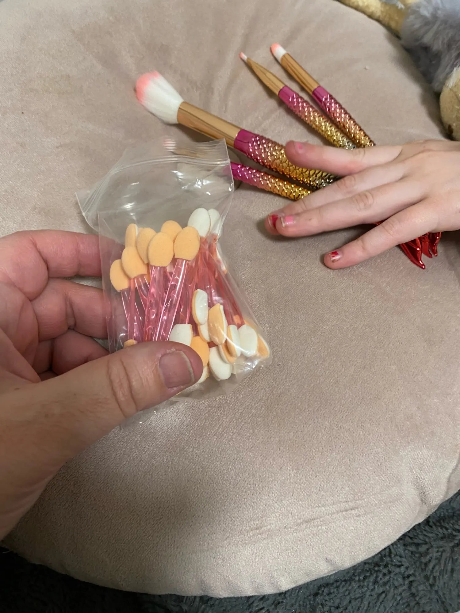Они хорошие. Пришел без упаковки только в почтовом конверте. Те взяли одну губчатую голову оторвались… я положил немного клея и положил его обратно, надеюсь, что это'll держать. Didn. T просит частичный возврат средств и разговаривал с продавцом. Нет смысла в такой цене. Заставил их поставить блестящие тени для век, вызвать кисти иногда не't подобрать достаточно. Они в порядке.