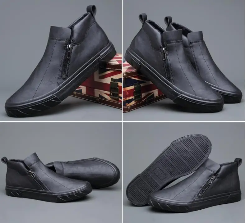 Мужские кожаные лоферы, дышащие, с высоким верхом, на вулканизированной подошве, с боковой молнией, с прошивным носком, для осени