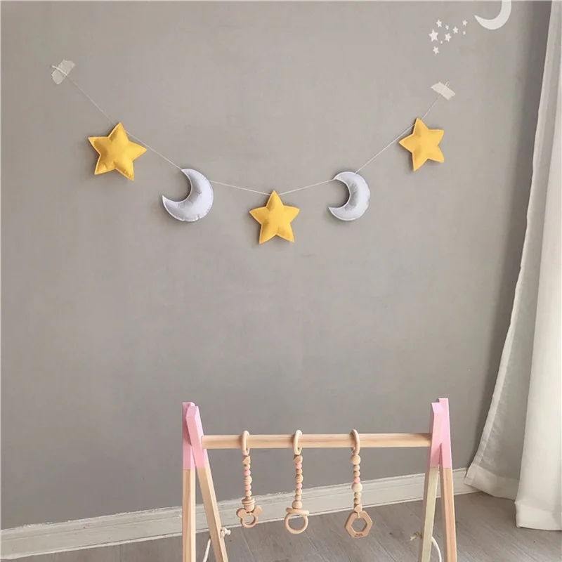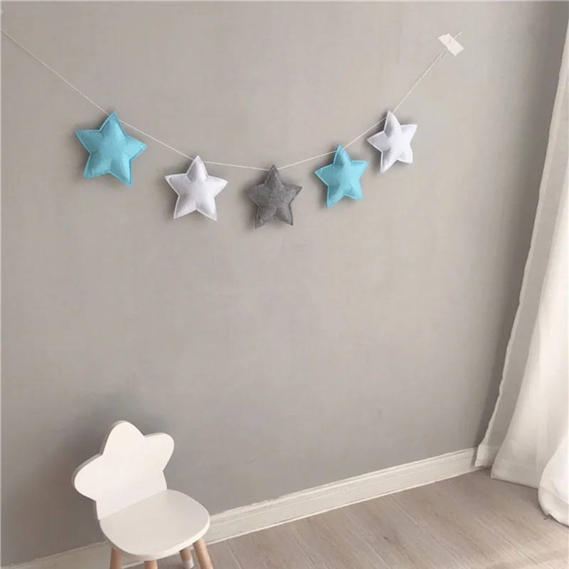 Скандинавская фетровая ткань, звездная луна, облако, гирлянда, баннер для детской комнаты, подвесное настенное украшение, коврик для кровати, украшение для Baby Shower