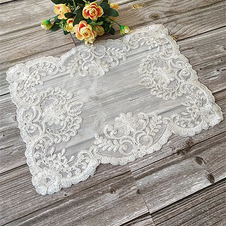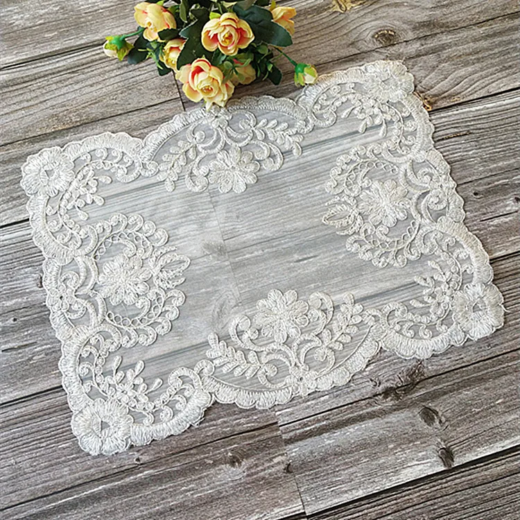 Европейский классический бежевый кружевной вышитый прямоугольный фруктовый десертный кофейный столик Подставка под чайный коврик шкатулка под старину полотенце