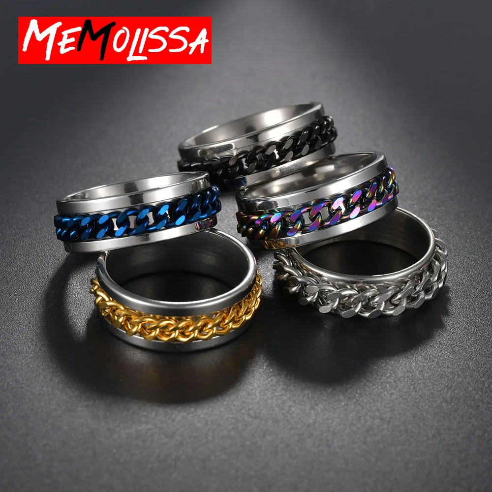 1. Имя:Красочная цепь Спиннер кольцо для мужчин 5 видов цветов в наличии хип-хоп панк нержавеющая сталь черное золото обручальное мужское кольцо модный подарок