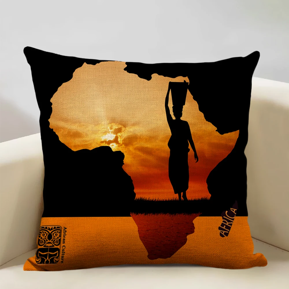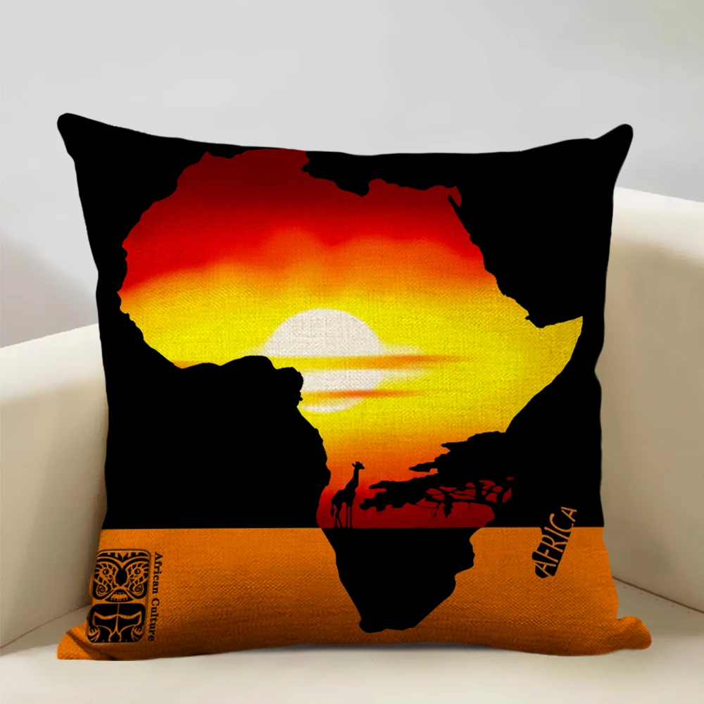 Наволочка для дивана с изображением Африканской карты, украшение для дома, гостиной, 45x45 см, темно-серая, для бара, кафе, художественные аксессуары