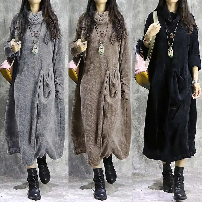 Женское вельветовое платье с длинным рукавом и воротником-хомутом