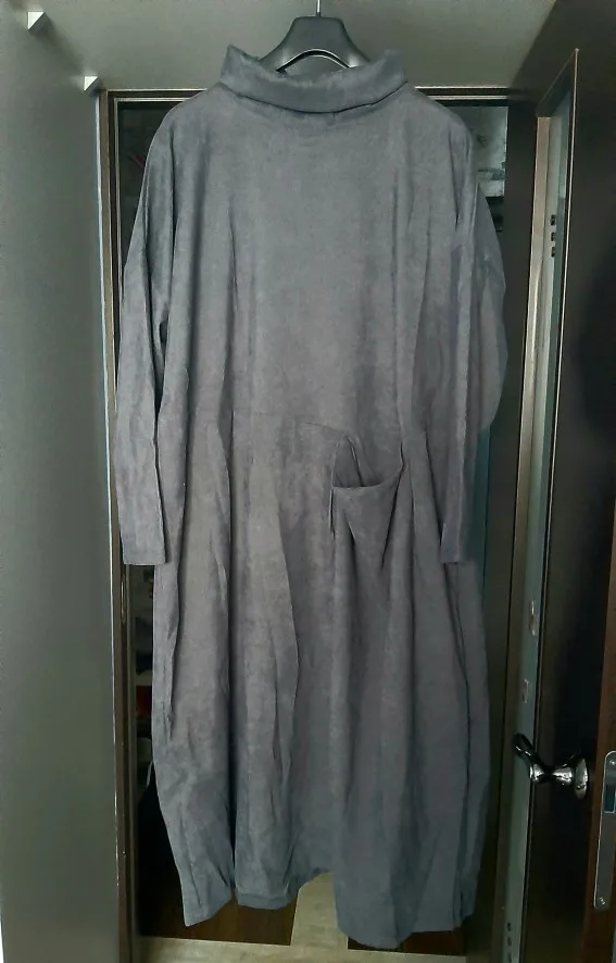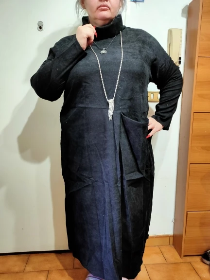 Очень точным является описание товара. Платье вельветовое синтетика высокий воротник хомут и очень длинные рукава.Платье длинное на рост158 в пол мешковатое размер плюс на ОГ130 и ОБ130 утонула . Можно на размер меньше, но из-за толстых рук было бы тесно в рукавах. Посылка отслеживалась.Спасибо продавцу за хорошую работу.