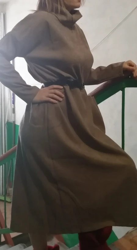 девочки взяла второе платье, потому что первое 4хл оказалось очень большим на обхват груди 118см, пришлось купить снова 2хл и все отлично. прилетают за дней 10 быстро очень, материал хороший. похож на мелкий вельвет, смотрится стильно, на брюнетку будет хорошо бежевый, но и черный хорошо. я довольна