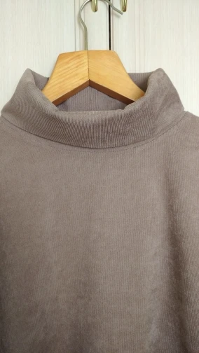 Заказанный 7 декабря, полученный 18 декабря во Франции в Париже. Легкая бархатная ткань в рубчик. Красивый осенний стиль «оверсайз». Водолазка. С длинными рукавами. Цвет соответствует. Я рекомендую для осени или ранней весны здесь. Качеств., выгодно.