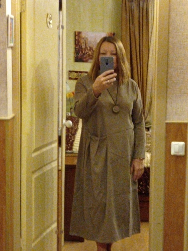 Платье чудо! Очень благородный цвет, скроено идеально. Единственное НО для меня - торчащий карман, но это легко исправить. Берем, девочки!