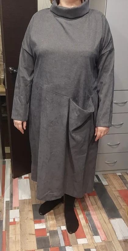 Спасибо мой любимый магазин!!! Опять порадовали! Платье шикарно е! пошив отличный! 100-90-105 рост 1,63 конечно свободно, можно было на размер меньше , длина до пяток.Надо обрезать,но это не проблема.Кто любит такой стиль рекомендую! Цвет ближе к серому , изумительный!Очень модное и стильное!Я опять в восторге от покупки. Карман большой ,можно прищепнуть чтобы не топорщился.Доставка 3 Нед. Кто любит стиль оверсайз - это ваше платье. удачных покупок!