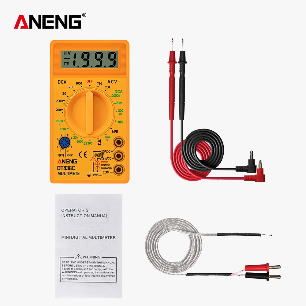 ANENG DT838C ЖК-цифровой мультиметр тестер напряжения переменного тока постоянного тока тестер сопротивления напряжения диодный диод ток Электрический измеритель напряжения