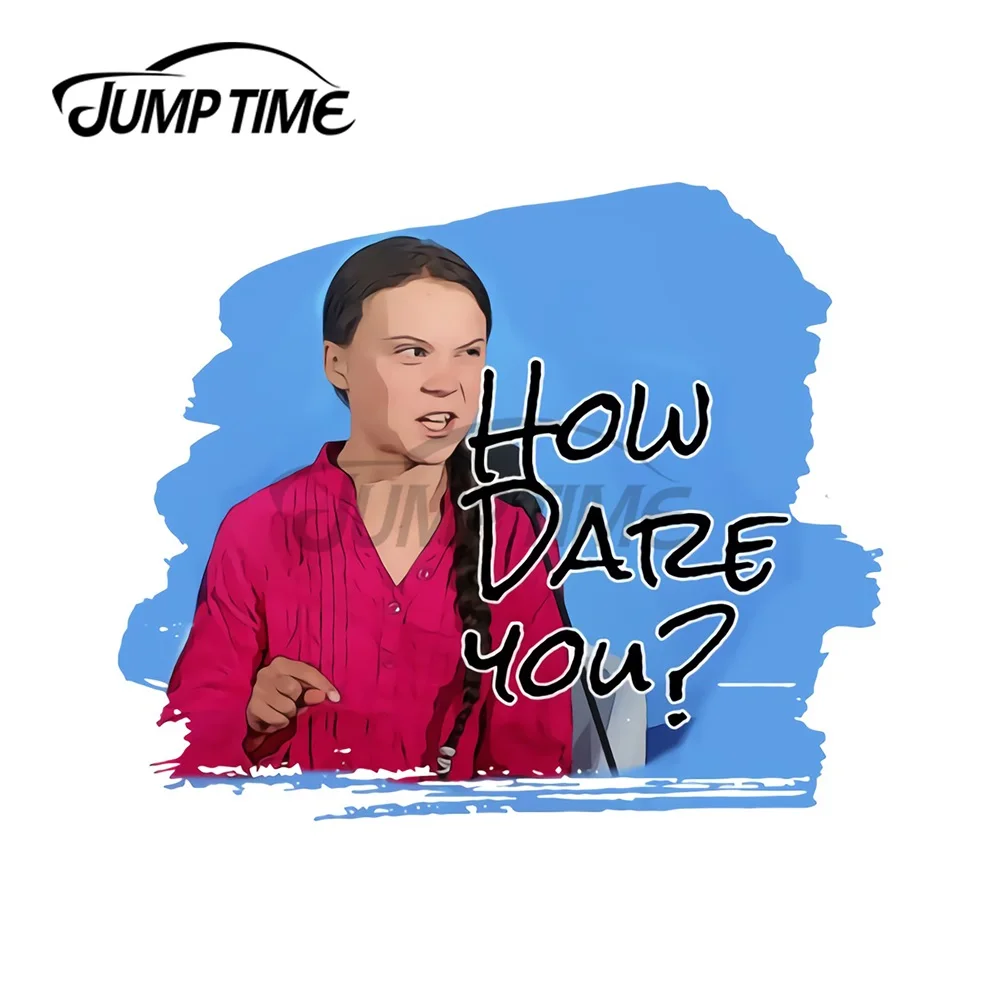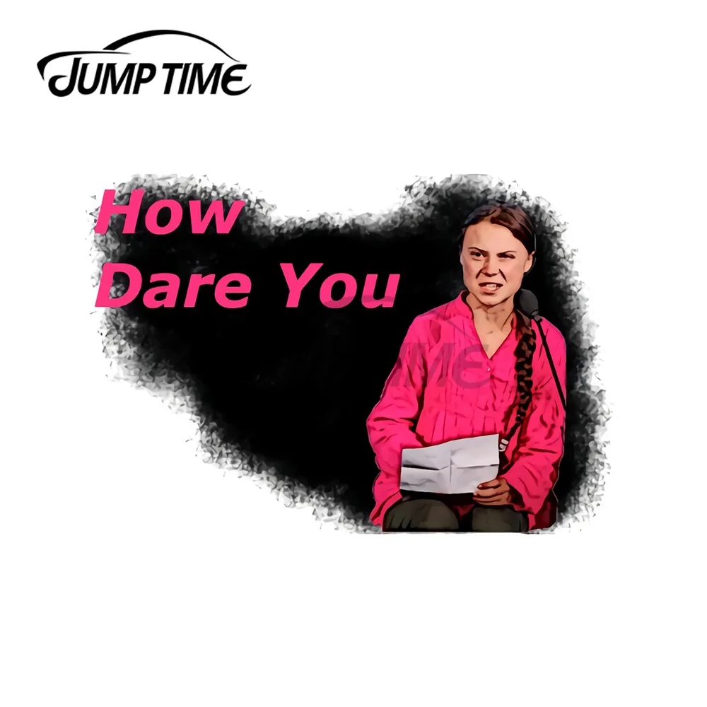 Время прыжка 13 см x 13 см Автомобильная наклейка как вы смеете! Виниловая наклейка Greta Thunberg для ноутбука, водонепроницаемые автомобильные аксессуары, забавная графика