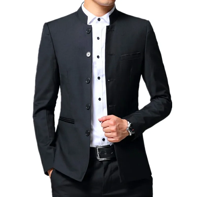 Мужской облегающий костюм из двух предметов с воротником-стойкой в китайском стилемужской блейзер Чжун-Шань, пиджак, брюки, юбка, 2 предмета