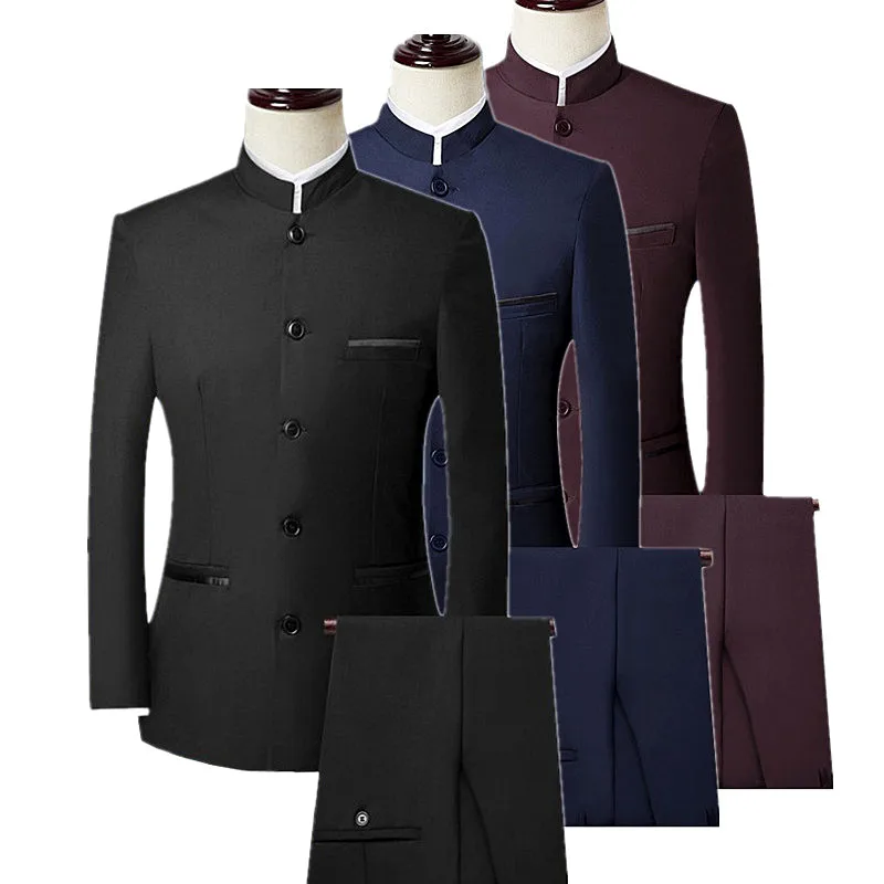 Мужской комплект из 2 предметов в китайском стиле (Блейзер + брюки), осенняя новинка, брендовая мужская Ретро-куртка и брюки, синяя, черная, красная стандартная