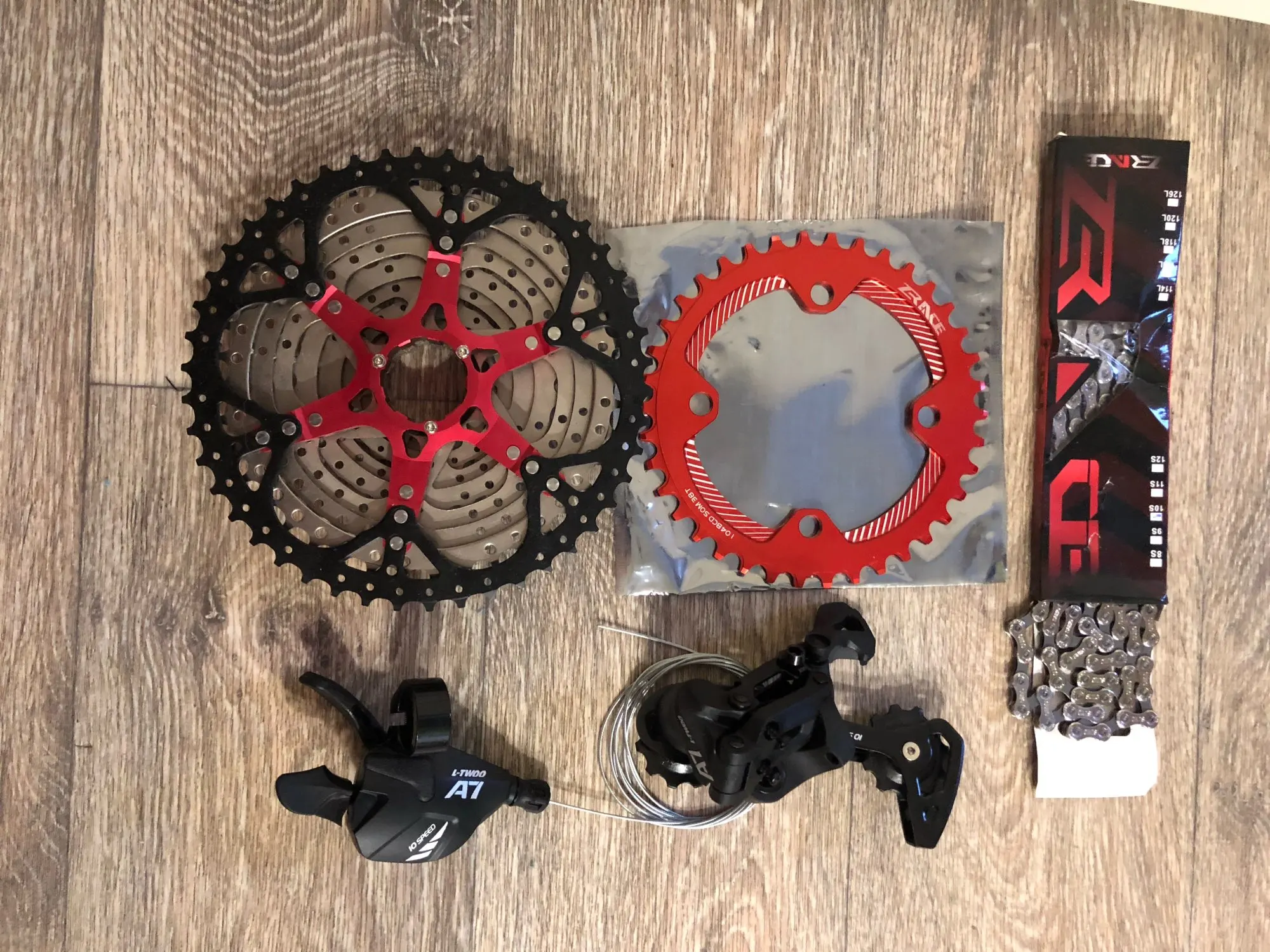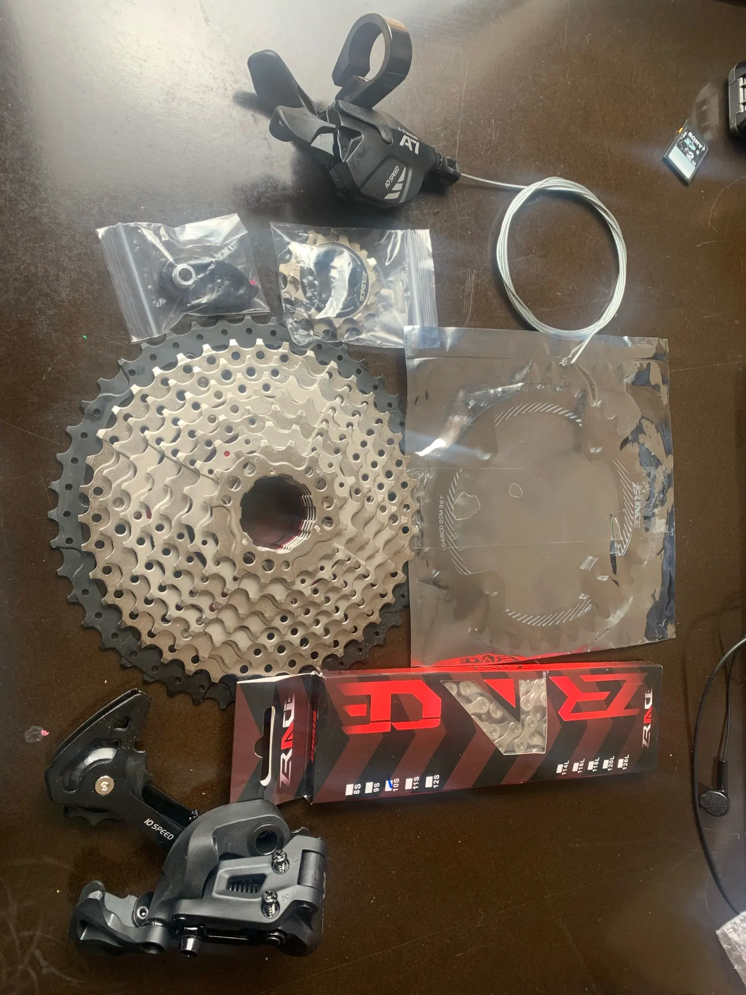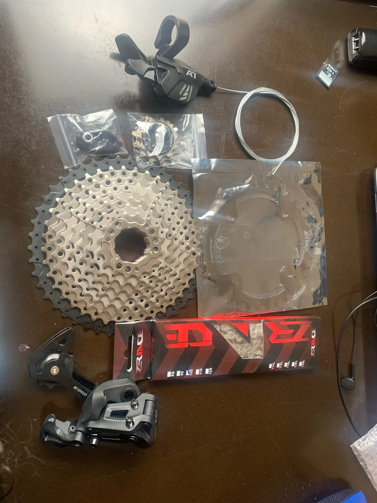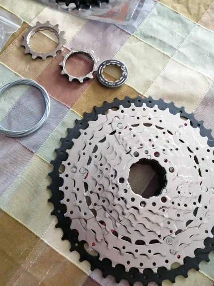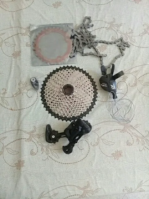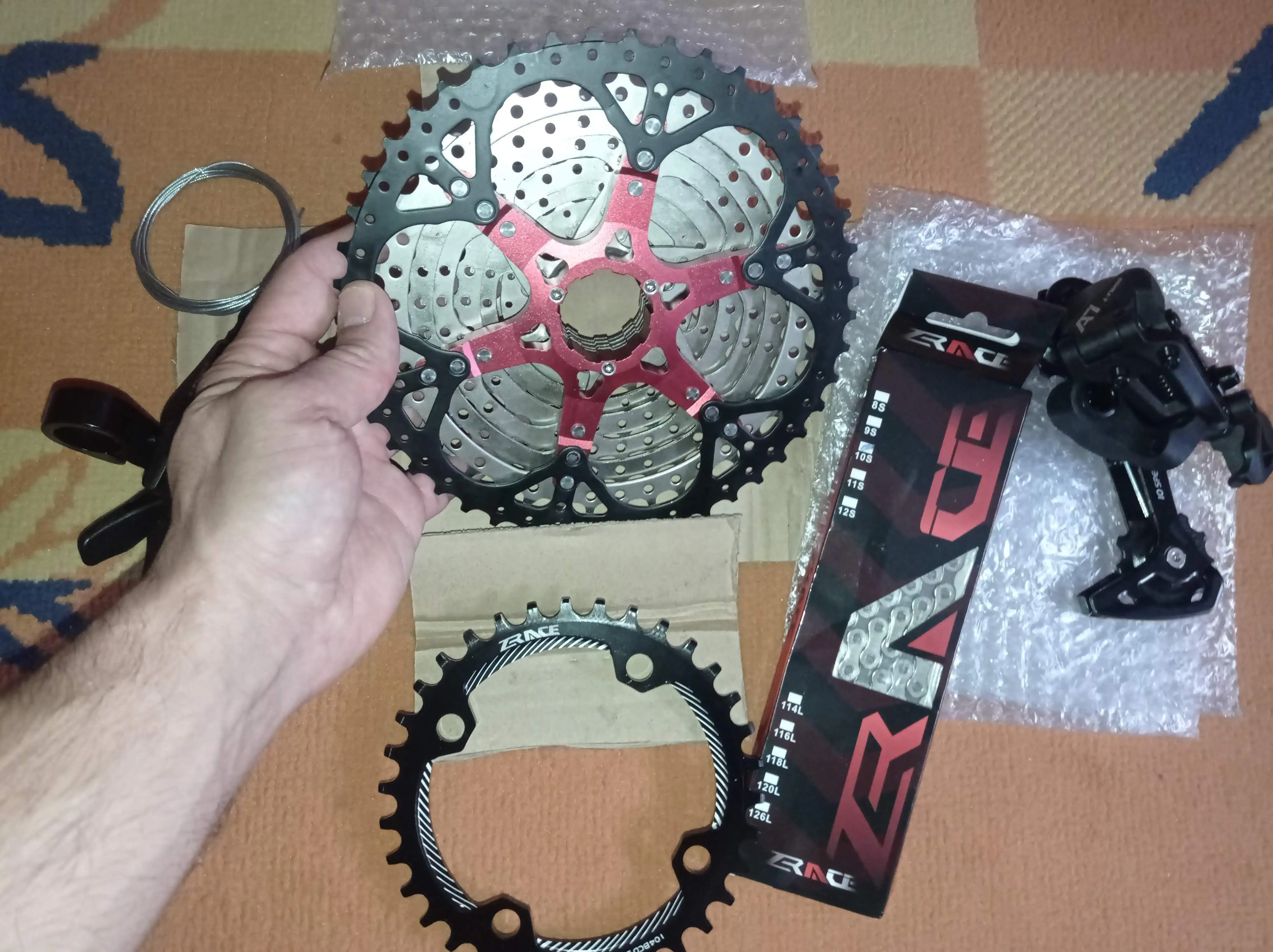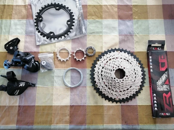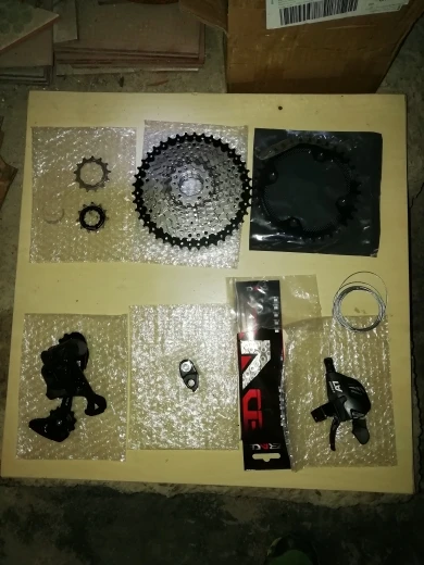 поставил переклюк кассету цепь, все работает но не без косяков. кассета чуть погнута. заказ шел дольше заявленного времени. коробка была разорвана и помята. не знаю как вообще все доехало. весь комплект среднего качества