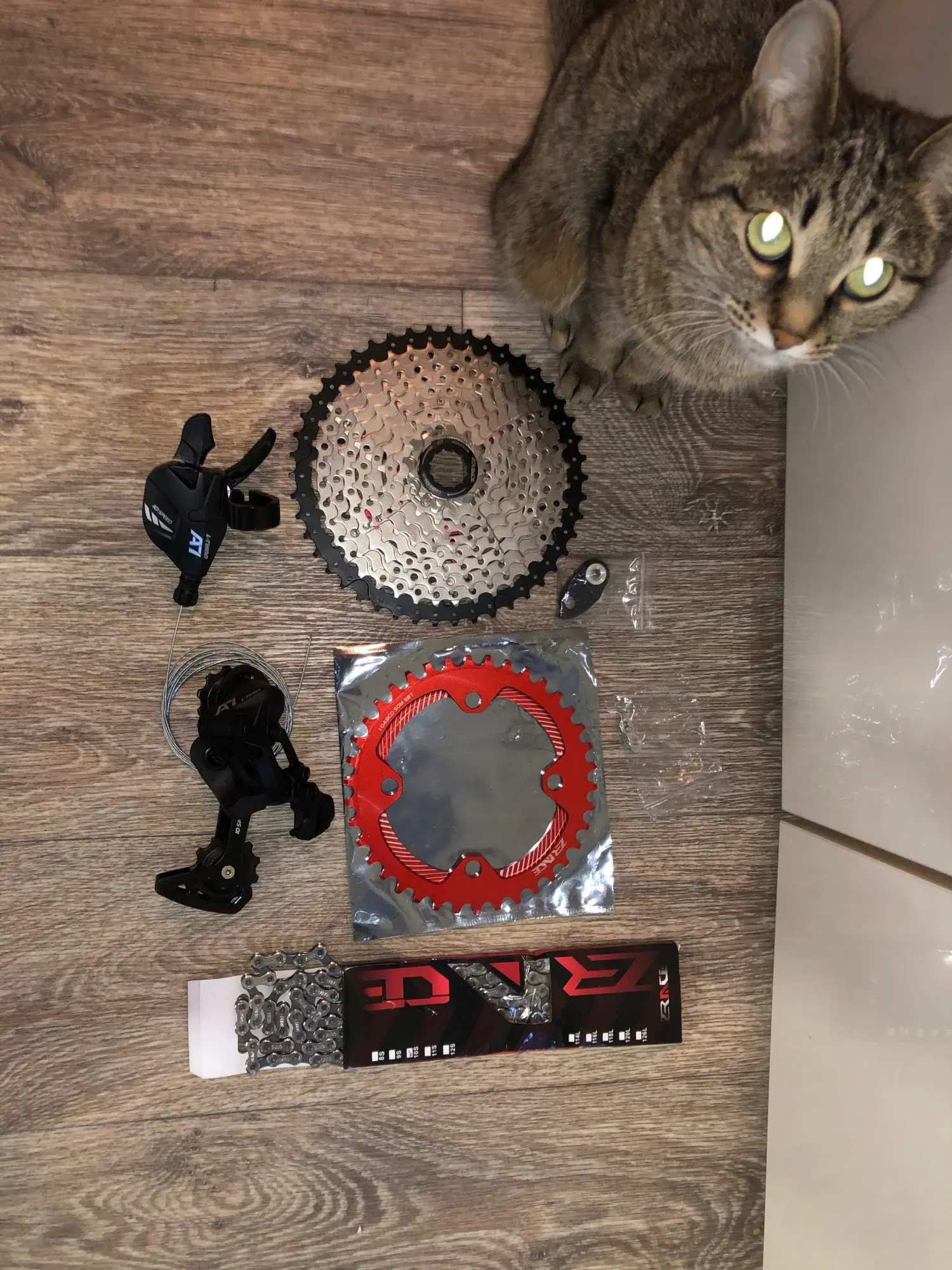 38я звезда изначально упиралась в перо, пришлось двигать каретку. Немного ушёл чейнлайн, но всё всёравно работает, для кассеты с 48 звездой пришлось поставить дополнительный-промежуточный "петух" из комплекта. Настраивается элементарно, проблем не возникло, работает чётко. Доставка к сожалению долгая 37 дней, DPD постаралась везти как можно медленнее =( В итоге переход на 1x10 состоялся, я доволен, 38 звезду вперёд могу посоветовать только для плоскача, себе заказал новую 34 звезду вперёд, у нас горки 13% и больше...