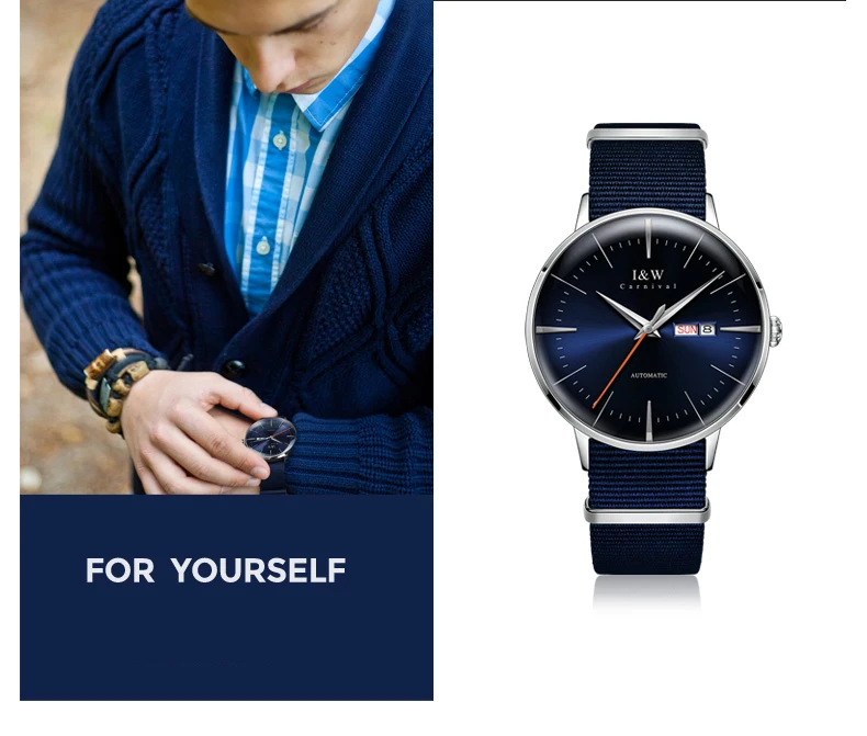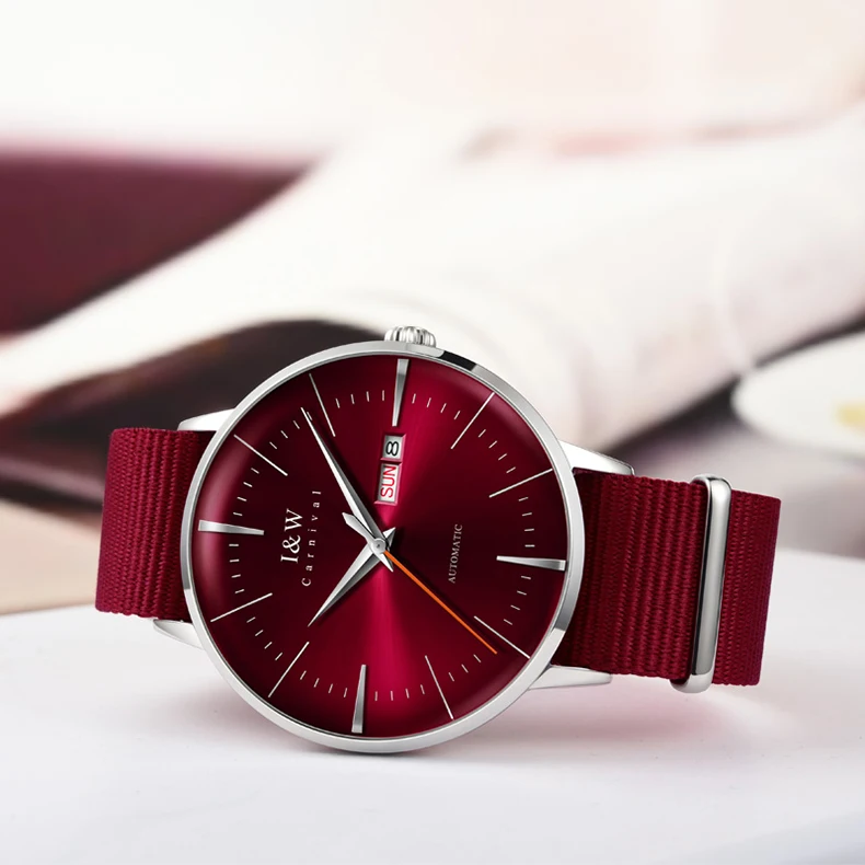 Модные автоматические часы с красным сапфиром, роскошный бренд, карнавал, новые механические часы MIYOTA, мужские водонепроницаемые часы с календарем, мужские часы