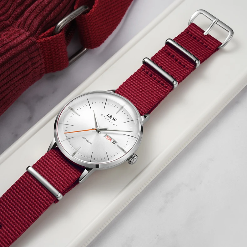 Часы мужские с автоподзаводом, с красным сапфиром, водонепроницаемые
