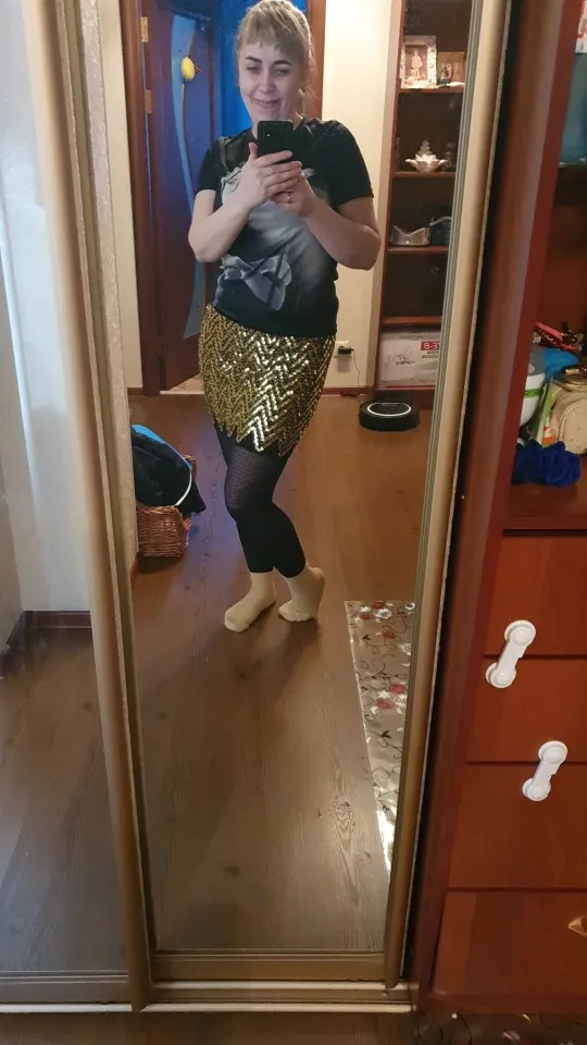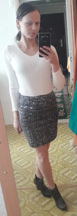 Девочки, юбка классная. Садится по фигуре идеально. Блестит ярко, очень нарядная. Фото дополню позже. Продавец очень быстро отправил юбку, нереально быстро. Супер товар! Стоит заказать такую юбку на весну, на любой праздник оденете и будете блистать.