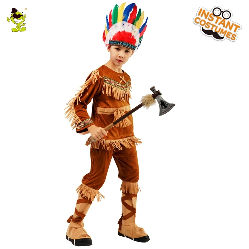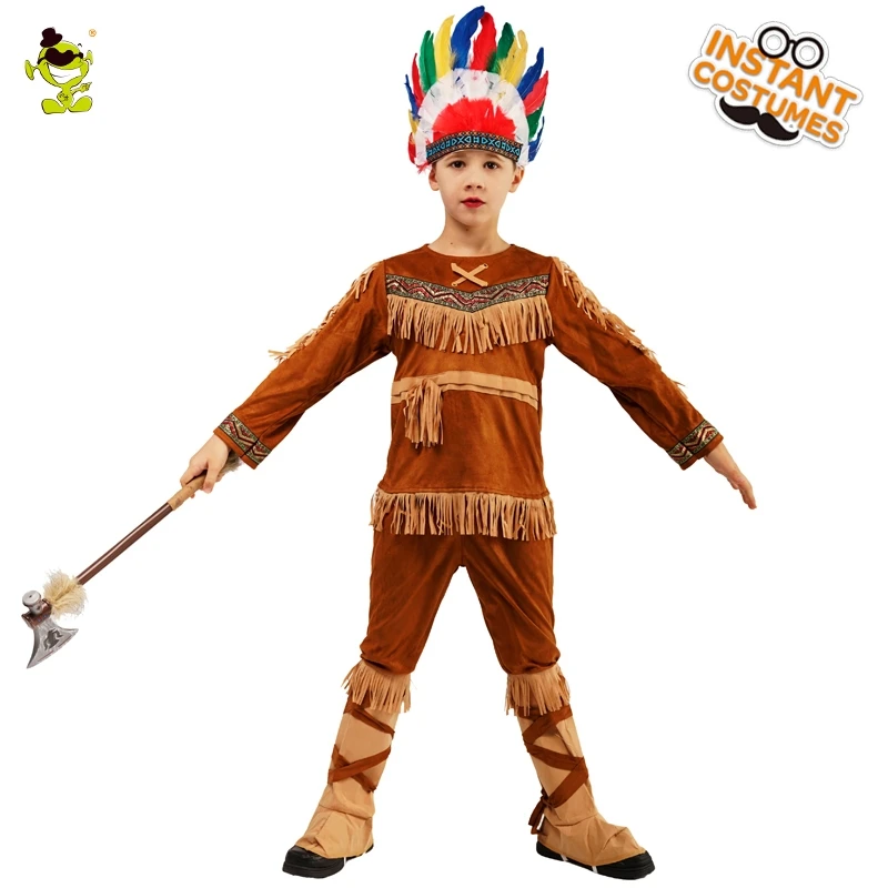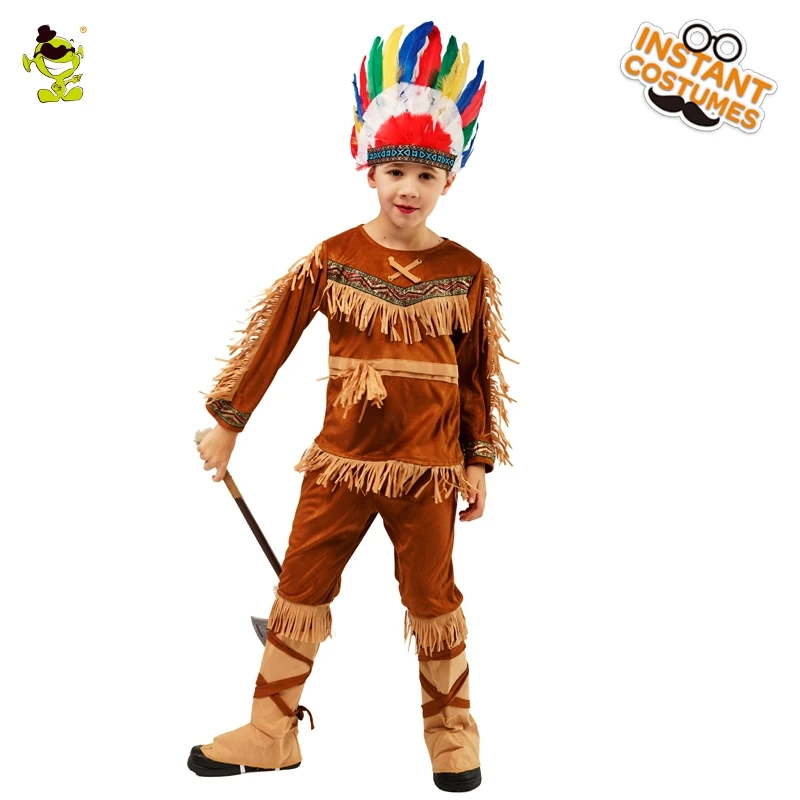 Детские индийские наряды для косплея, наряды индейцев для мальчиков, ролевые игры, Хэллоуин, Пурим, костюм для детей