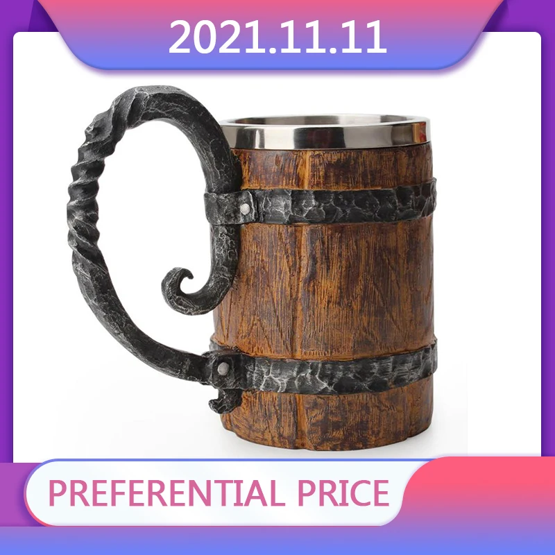 Кружка для пива в деревянном стиле, 500 мл, Имитация деревянной кружки, кружка для питья с двойными стенками, металлическая Изолированная кружка для бара, большая бочка для питья