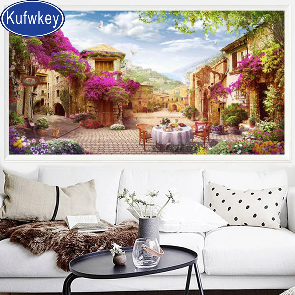 Распродажа алмазной вышивки Garden Street View, квадратная Круглая Мозаика, 3d вышивка крестиком, пейзаж «сделай сам»,
