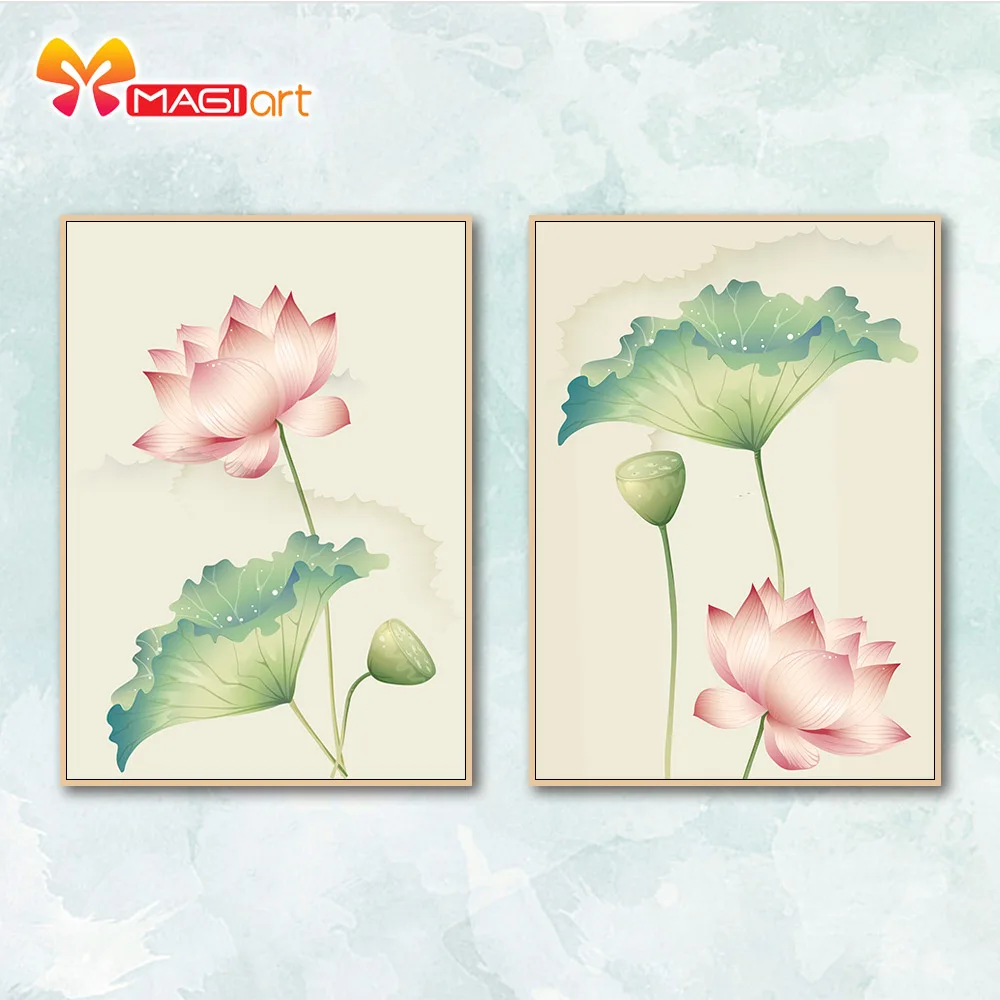 вышивка крестом наборы рукоделие, 11CT водорастворимый холст, 14CT Цветочный стиль лотоса и leaf-NCMF242