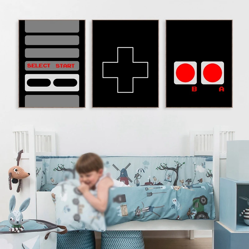 Игровые принты, постеры для мальчиков, подарок, украшение для игровой комнаты, игровой контроллер для видеоигр, Настенная картина на холсте, картина, декор для игровой комнаты