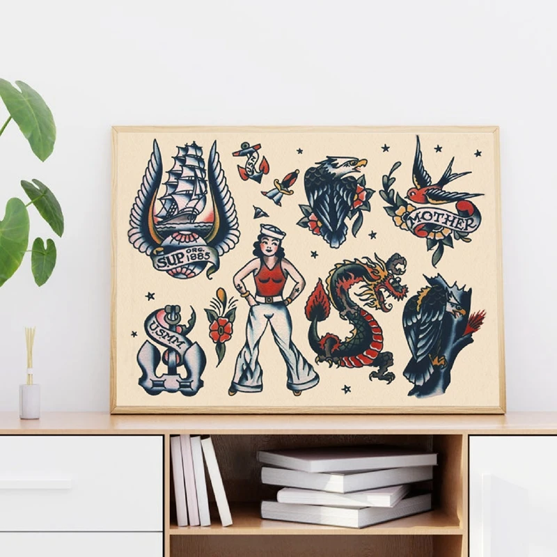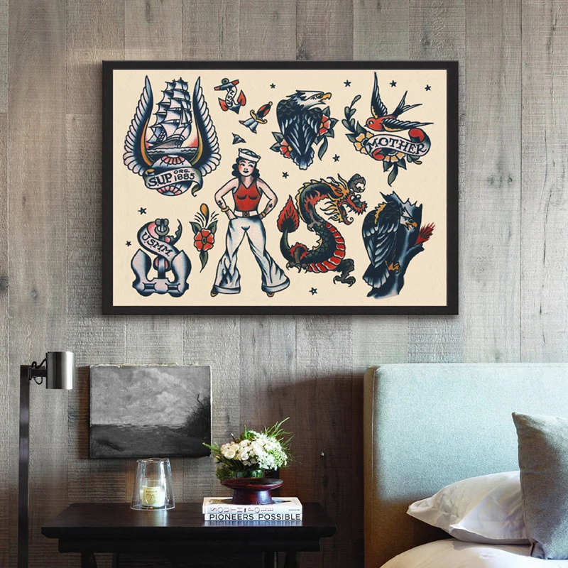 ThemeRetro Sailor Jerry Tattoo Tattooist Gift Canvas Art Prints