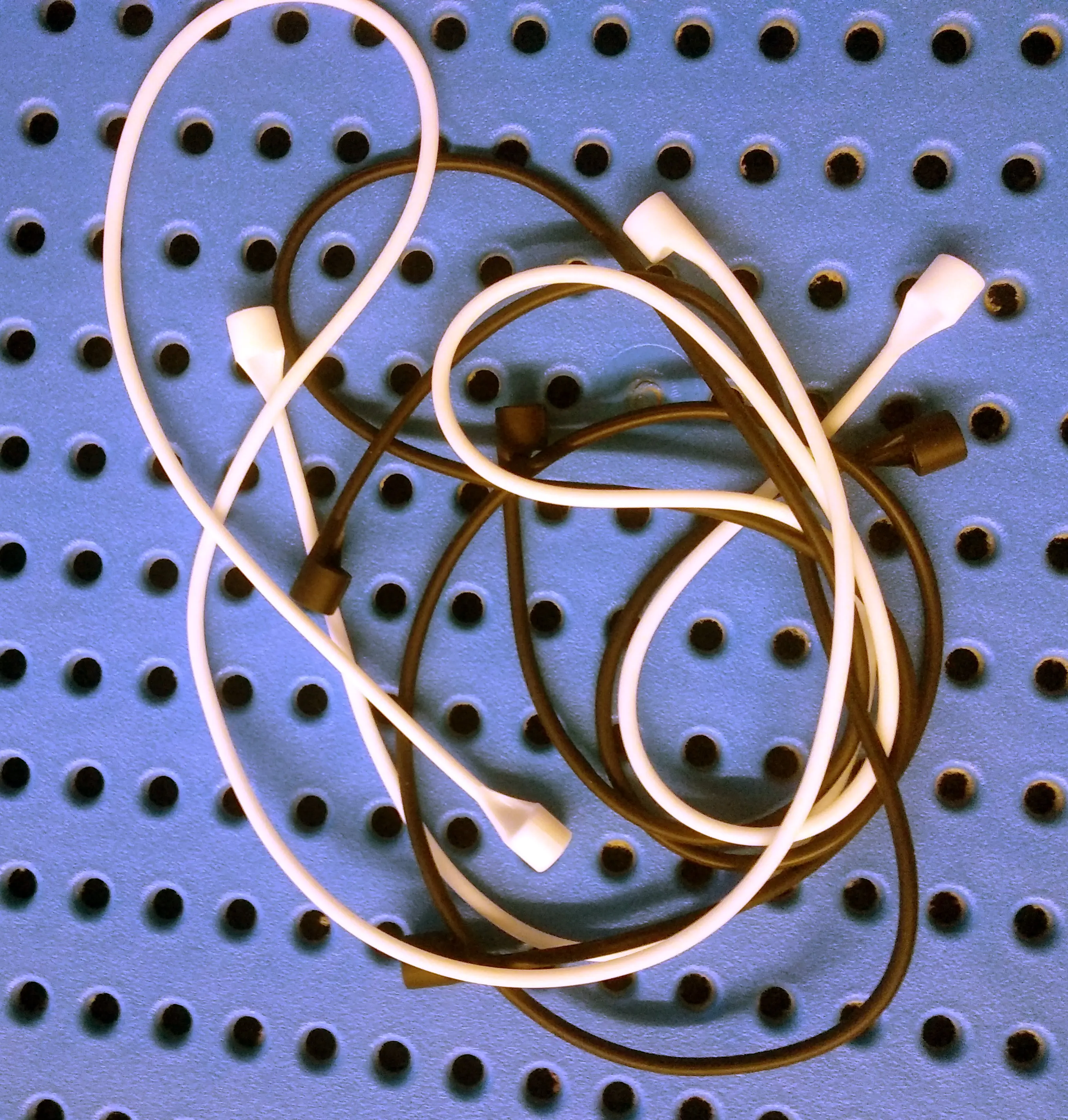 Шнур из мягкого силикона. Есть опасность, что зацепившись им, сразу же порвешь его. Но для такой цены качество приемлемое.