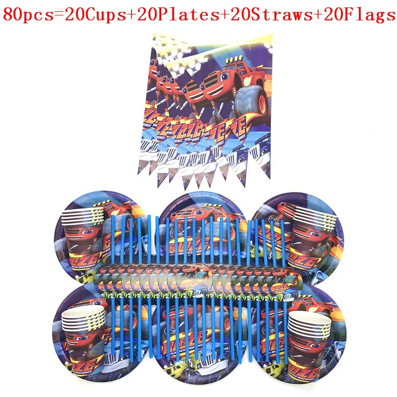 80 шт. Blaze and the Monster машины, наборы для дня рождения, украшения для детей, для мальчиков, товары для детвечерние праздников, автомобиль