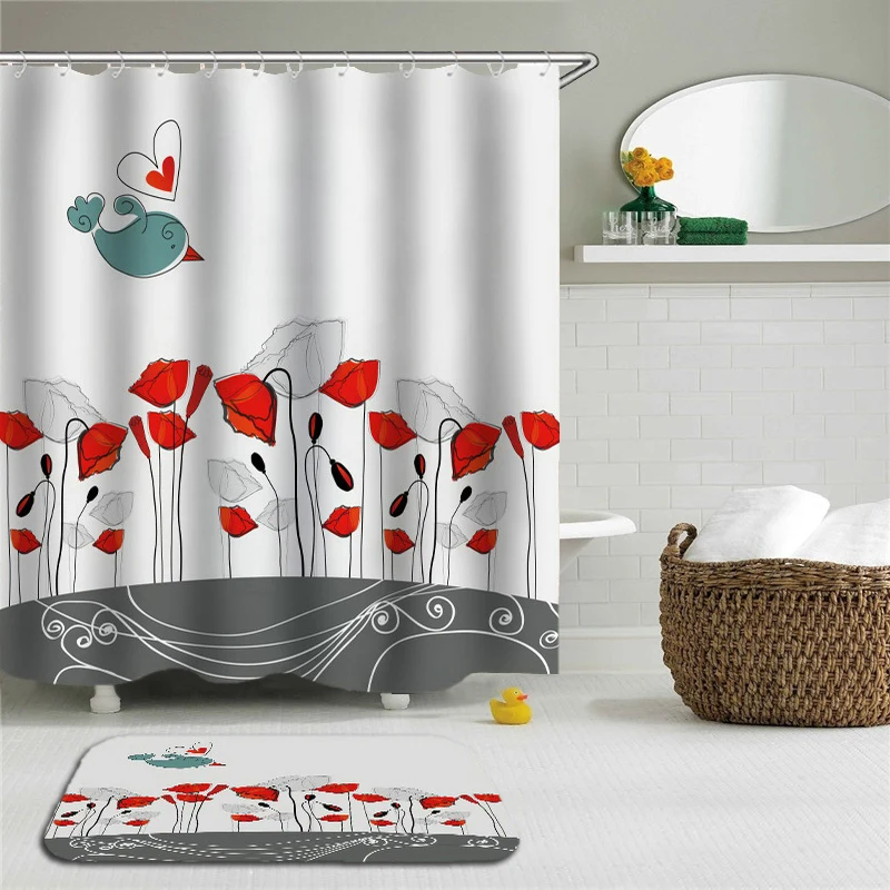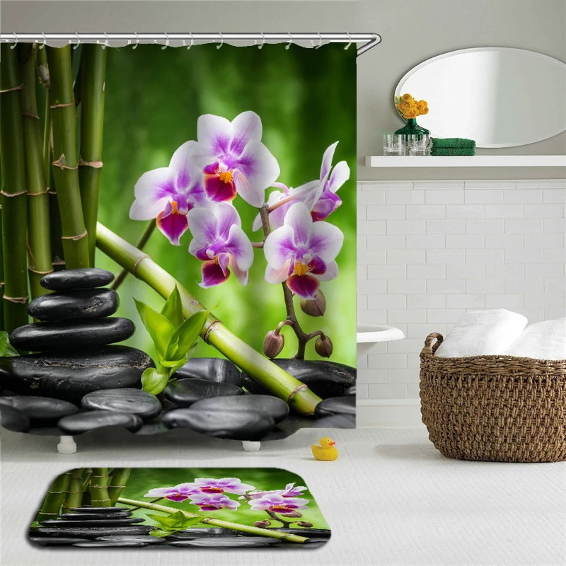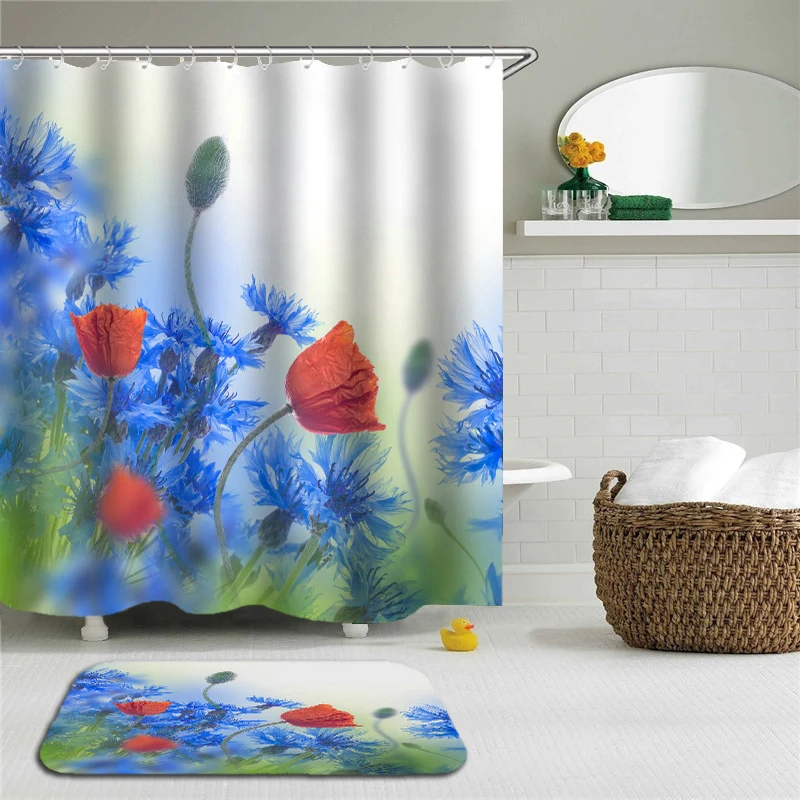 Водонепроницаемая занавеска для душа из полиэстера с 3D цветами