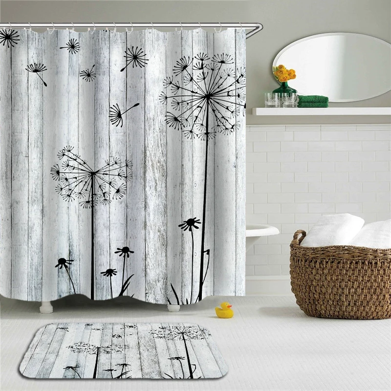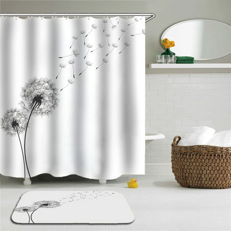 Занавеска для душа с принтом одуванчиков и цветов, комплект из 2 шт...