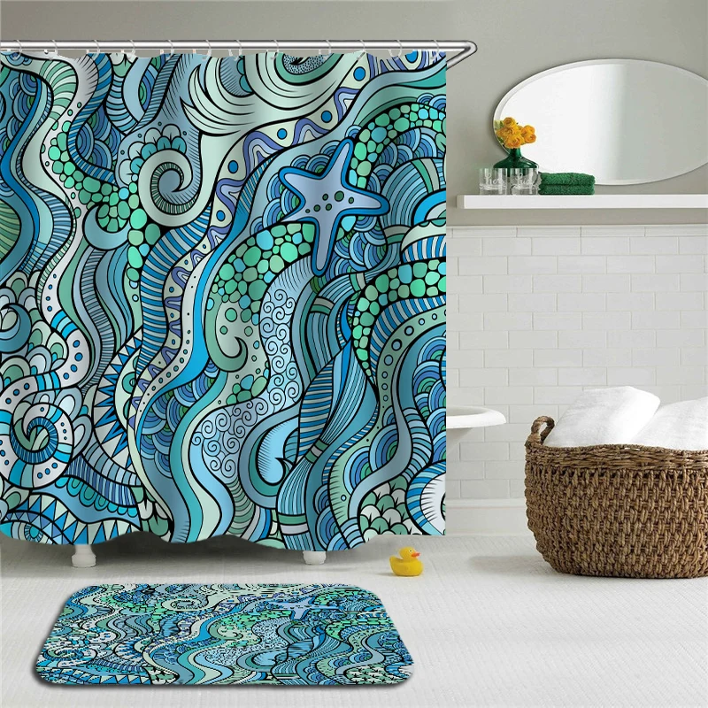Название товара: занавеска и коврик для душа с цифровой печатью