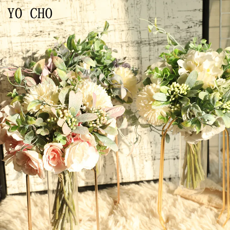 Искусственный Шелковый цветок YO CHO, маленький букет, пион, Гортензия, помпон, свадебный букет для невесты, цветок, украшения для вечерние