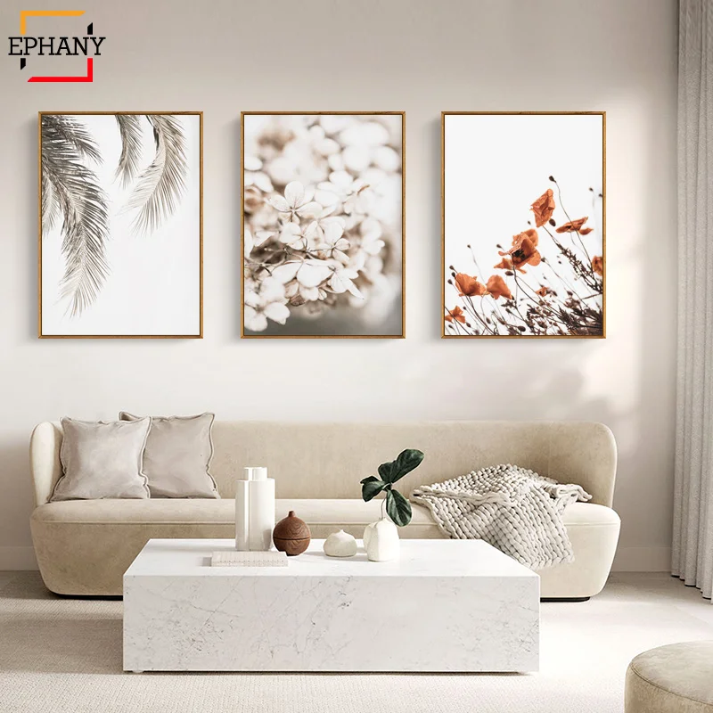 Картина с растительным принтом в виде пальмовых листьев, маки, настенная живопись, парусина, Современная Минималистичная картина, постеры, украшение для гостиной