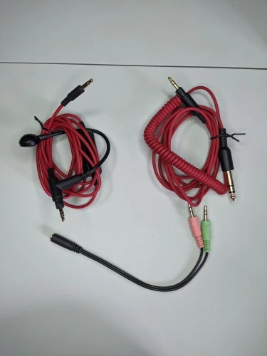 наушники отличные, доставка быстрая ( заказывала из России). звук в наушниках хороший, сами следят удобно, вес около 500 гр, крутятся в разные стороны. все шнуры пришли, их длинна около 2 метров ( честно ) а с пружинко може ещё длиньше тянуться. шнур с микрофоном работает отлично, микрофон без помех и звук четкий (в зависимости от расстояния до рта). так же есть ещё один шнур для компьютера с двумя разъёмами, тоже рабочий. в комплекте ещё шел чехол для наушников (наушники лежали в нем сразу). с продавцом не общалась, заказом пока ОЧЕНЬ довольна.