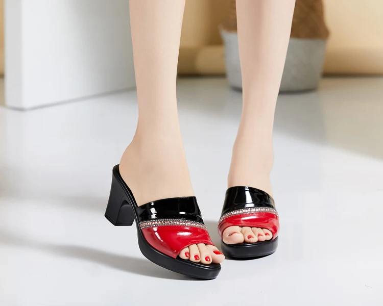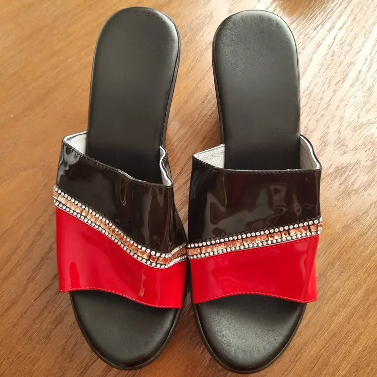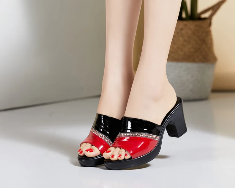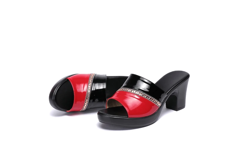 GKTINOO женские тапочки с 2022; Летние женские шлепанцы из натуральной кожи; Женская обувь на высоком каблуке; Модные стразы; Летние туфли
