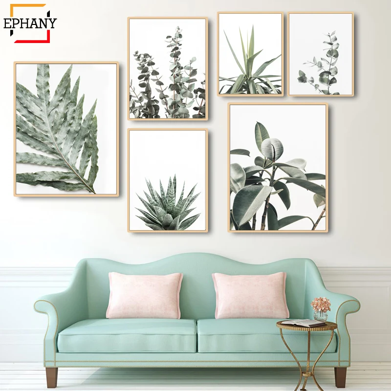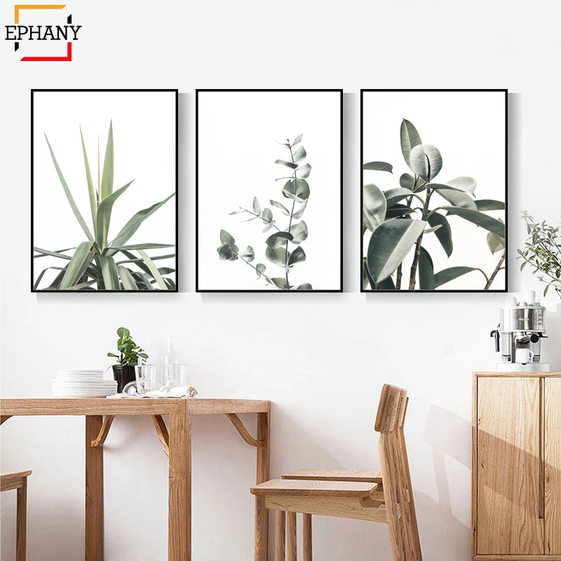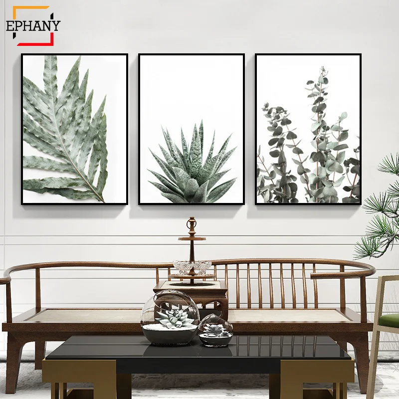 Скандинавский парусиновый постер с зелеными листьями, скандинавский...