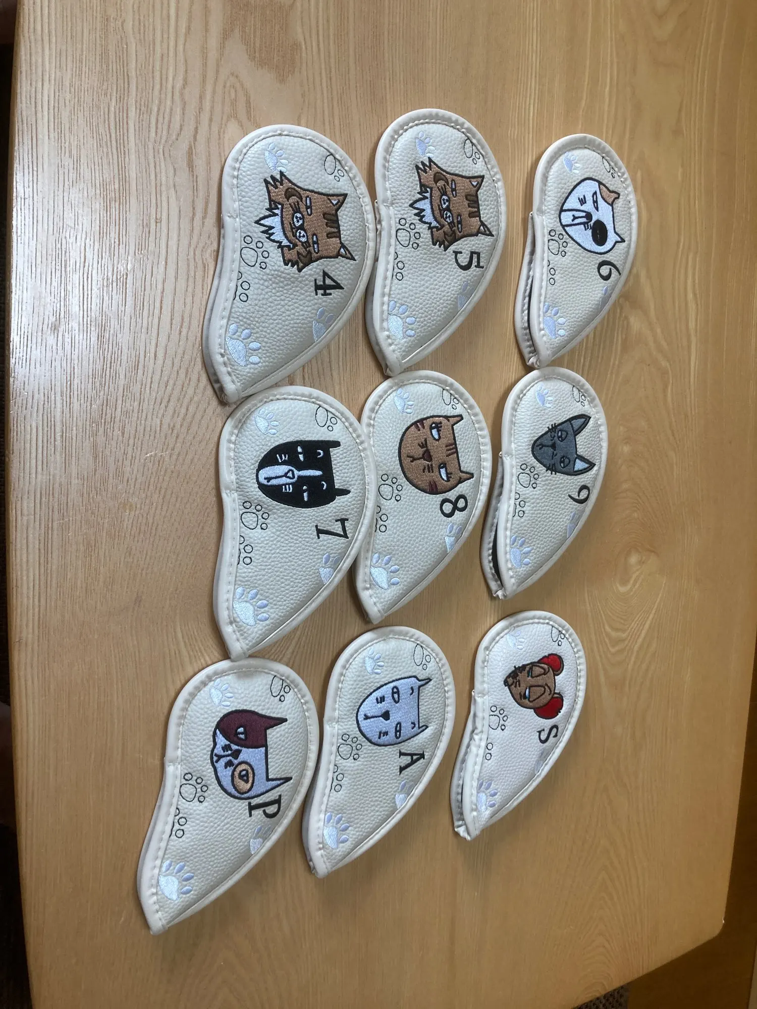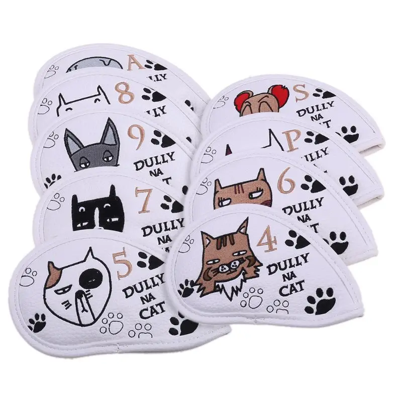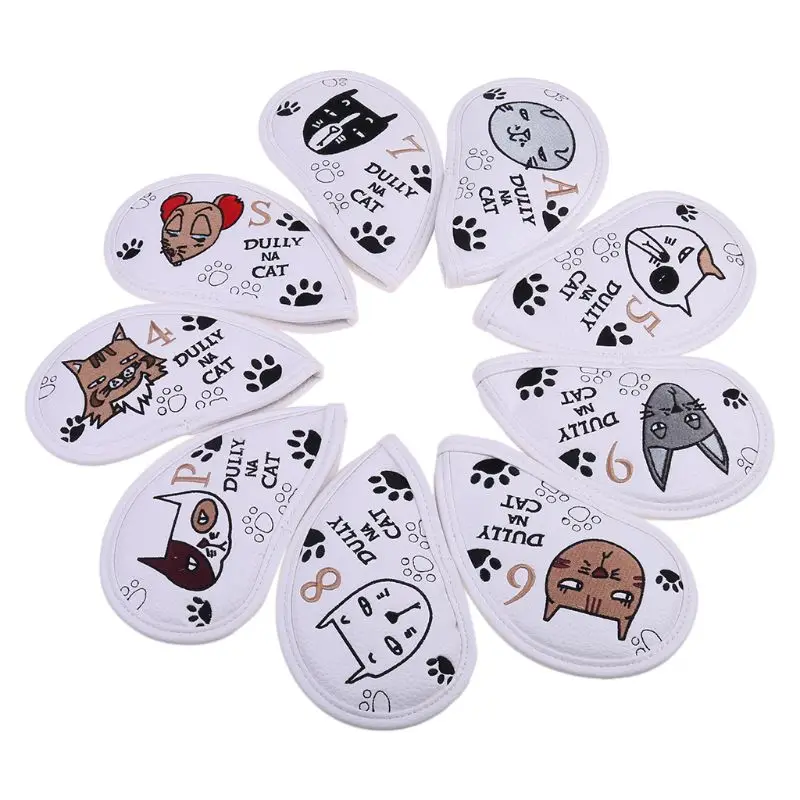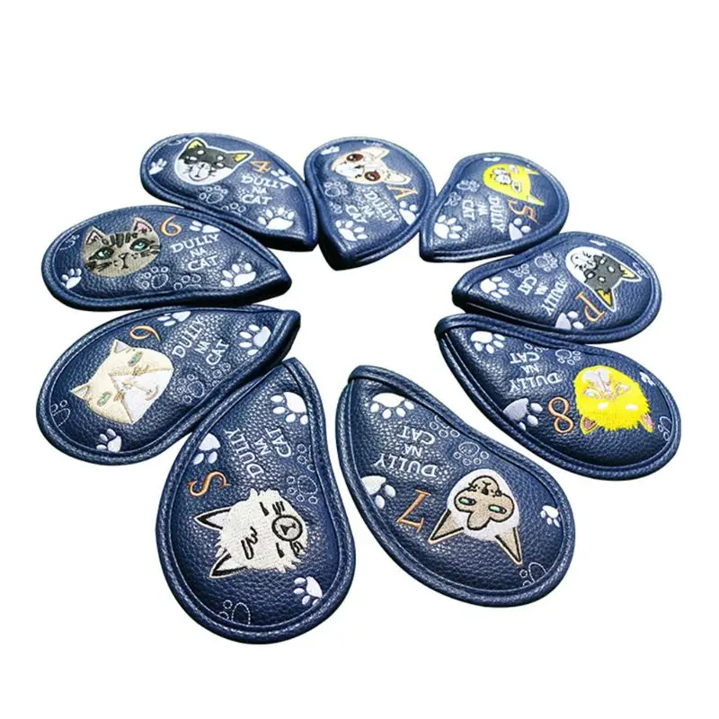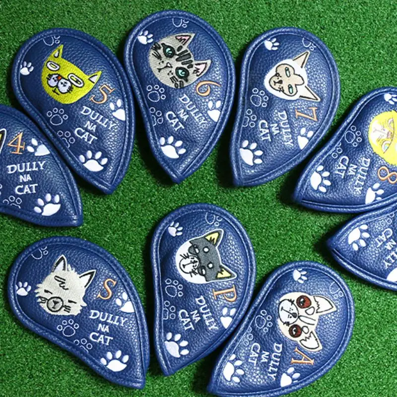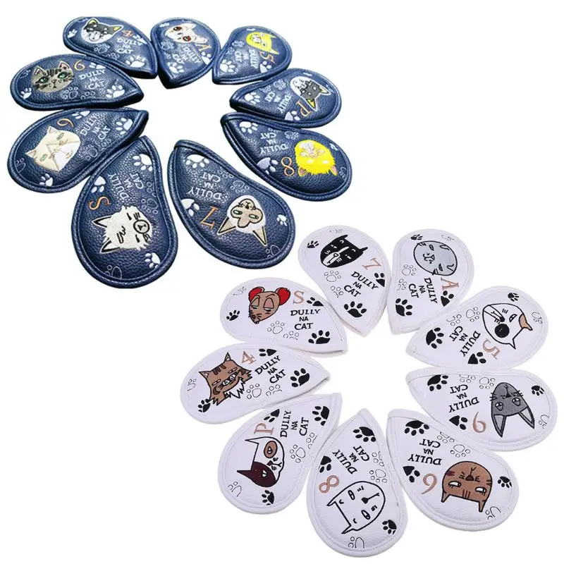 Новинка 2021, 9 шт., портативные головные уборы для гольф-клуба, милый водонепроницаемый чехол из искусственной кожи с рисунком мультяшного кота